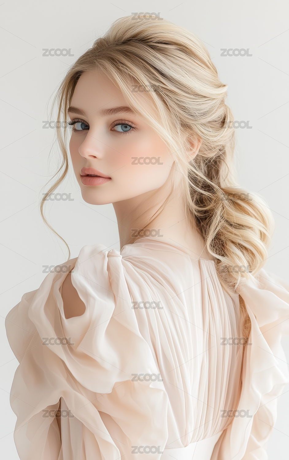 白色背景中欧美金发美女