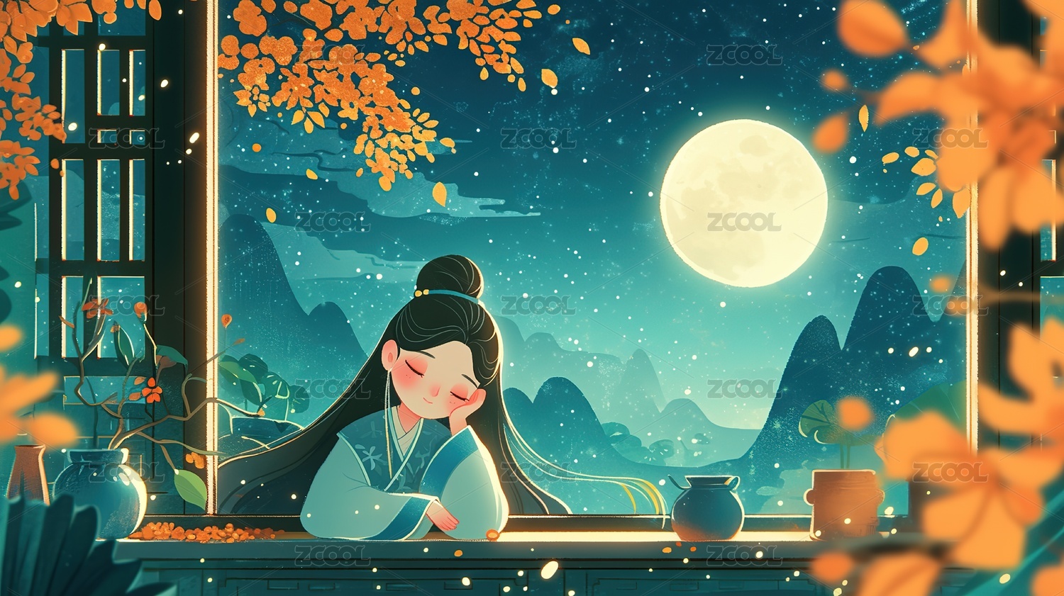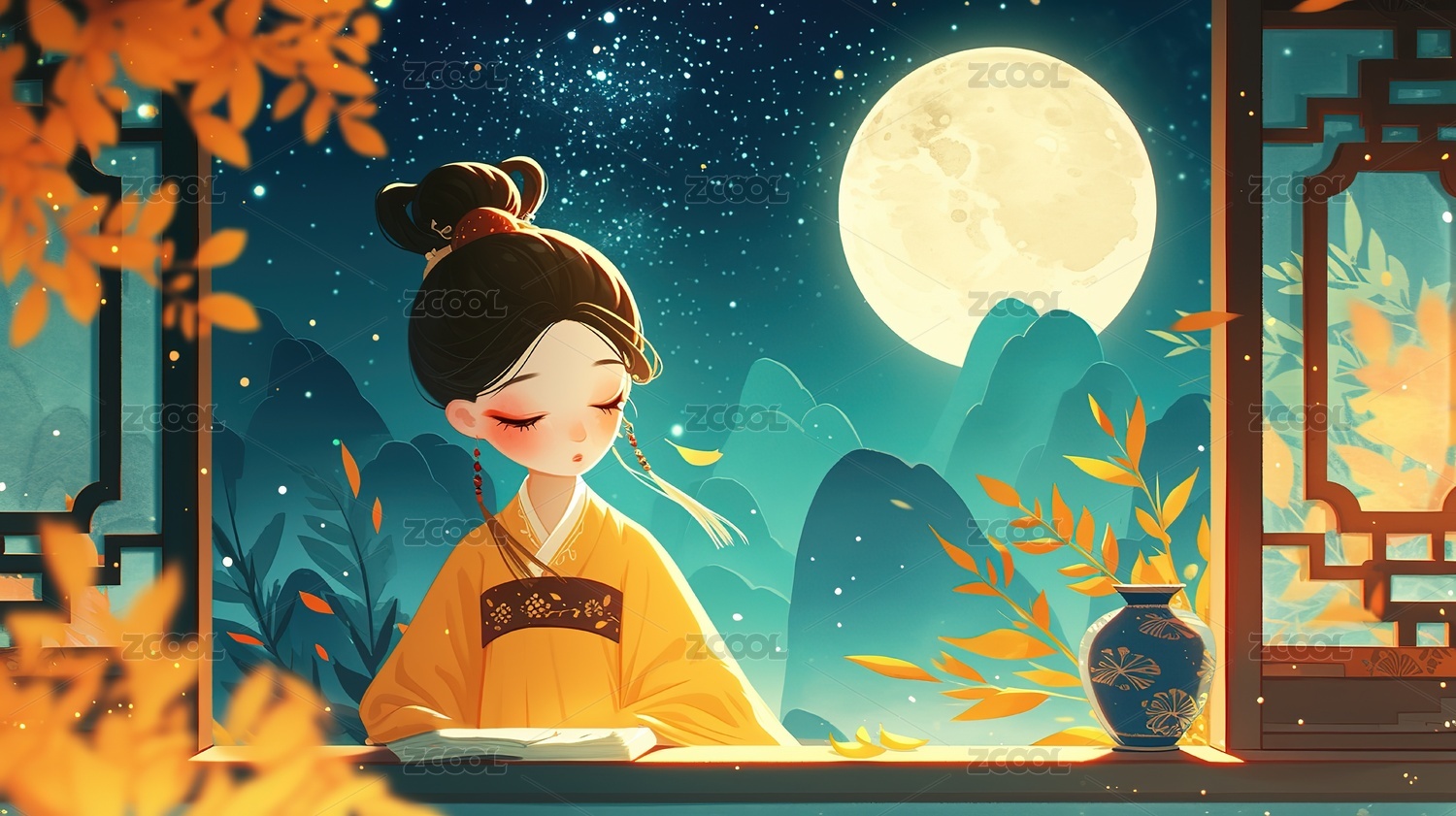 中国文化,节日,月亮,风景,自然,秋天,中秋节,满月,桂花,灯笼