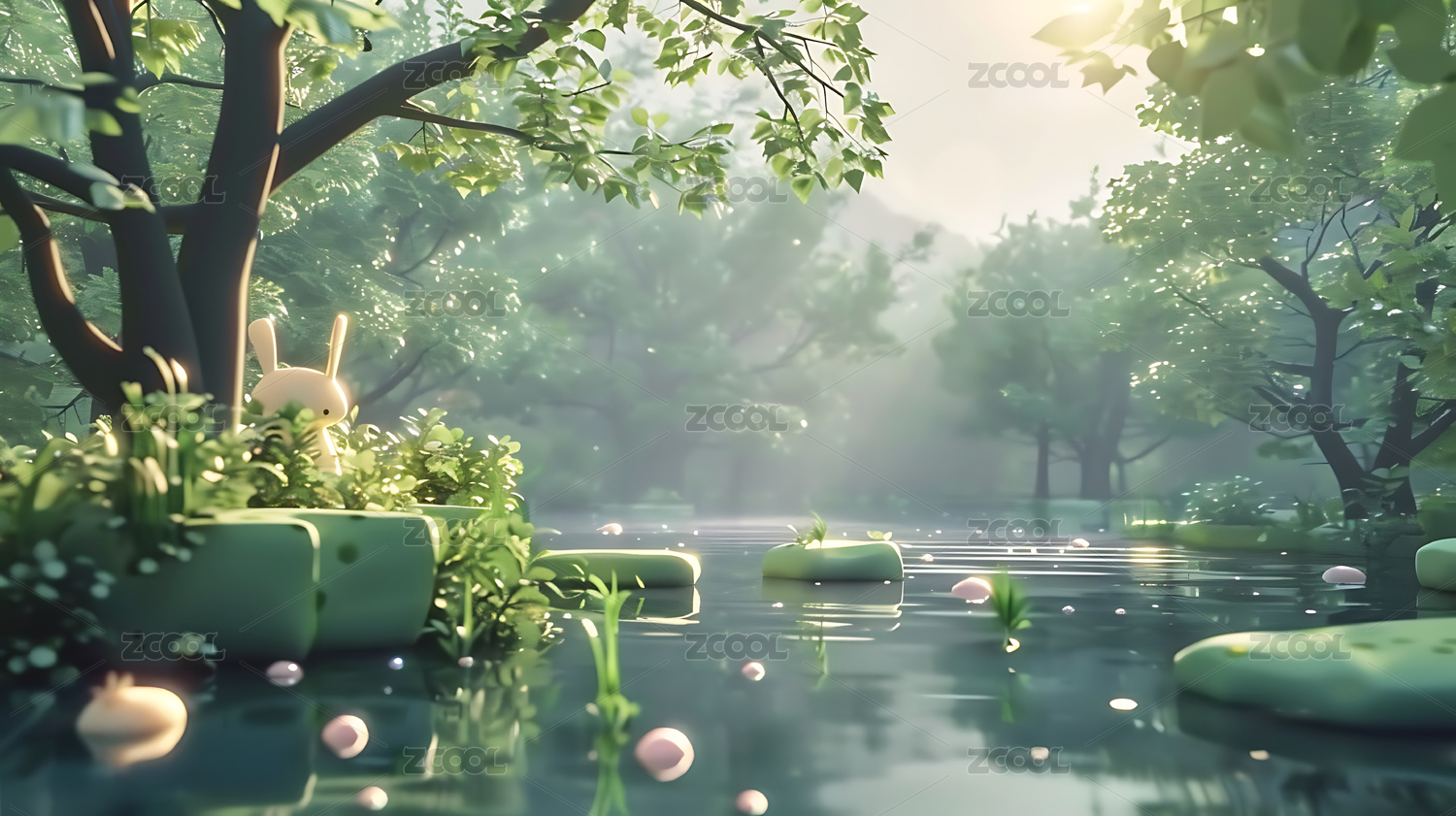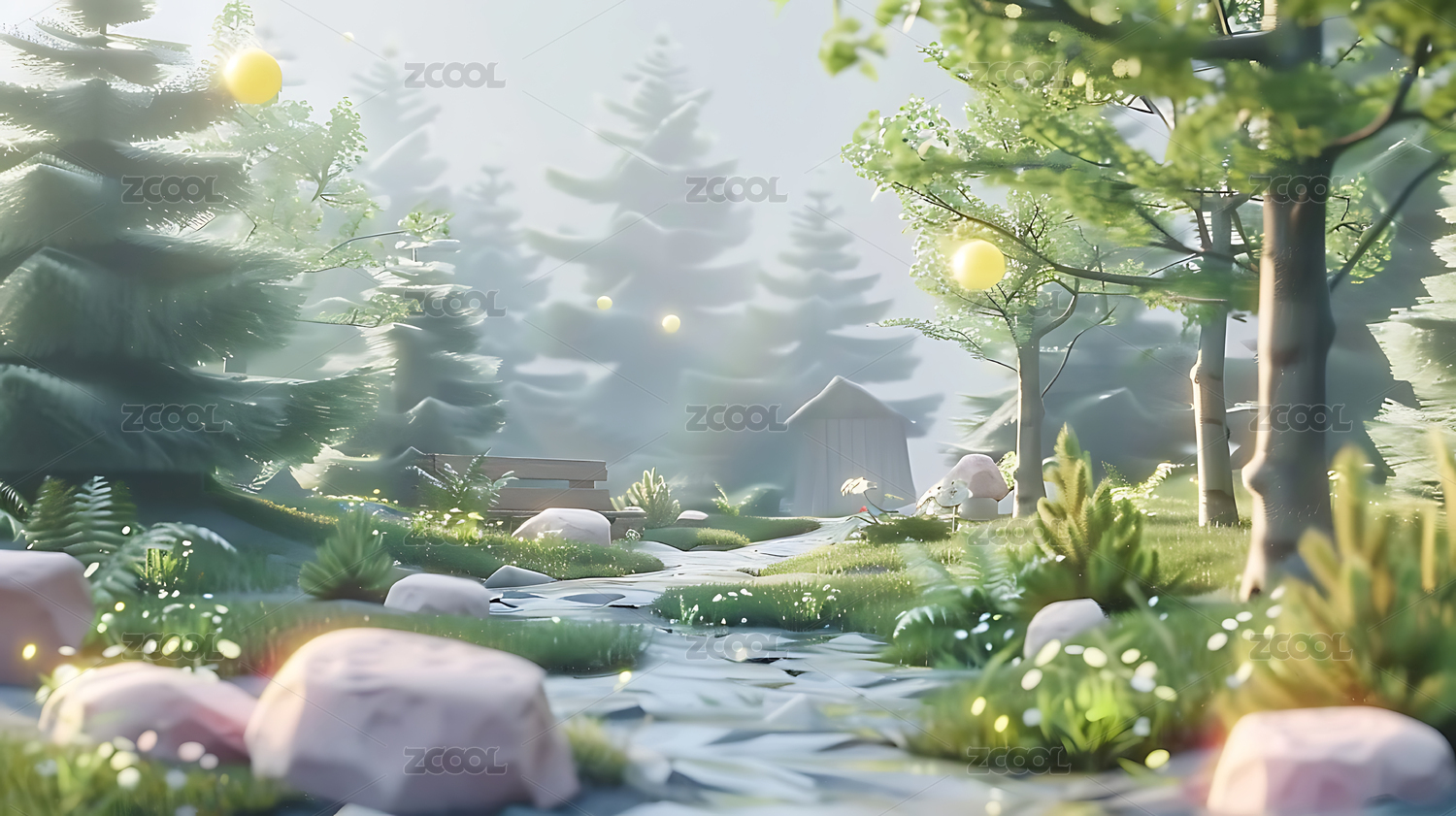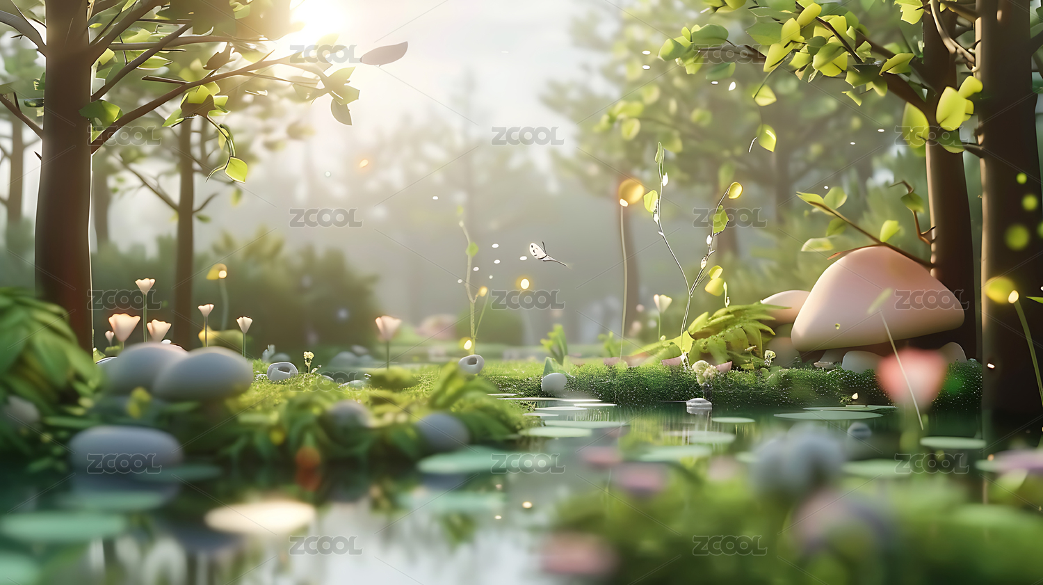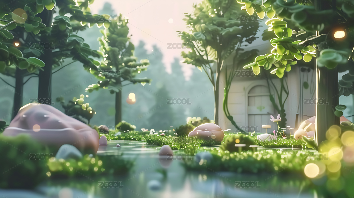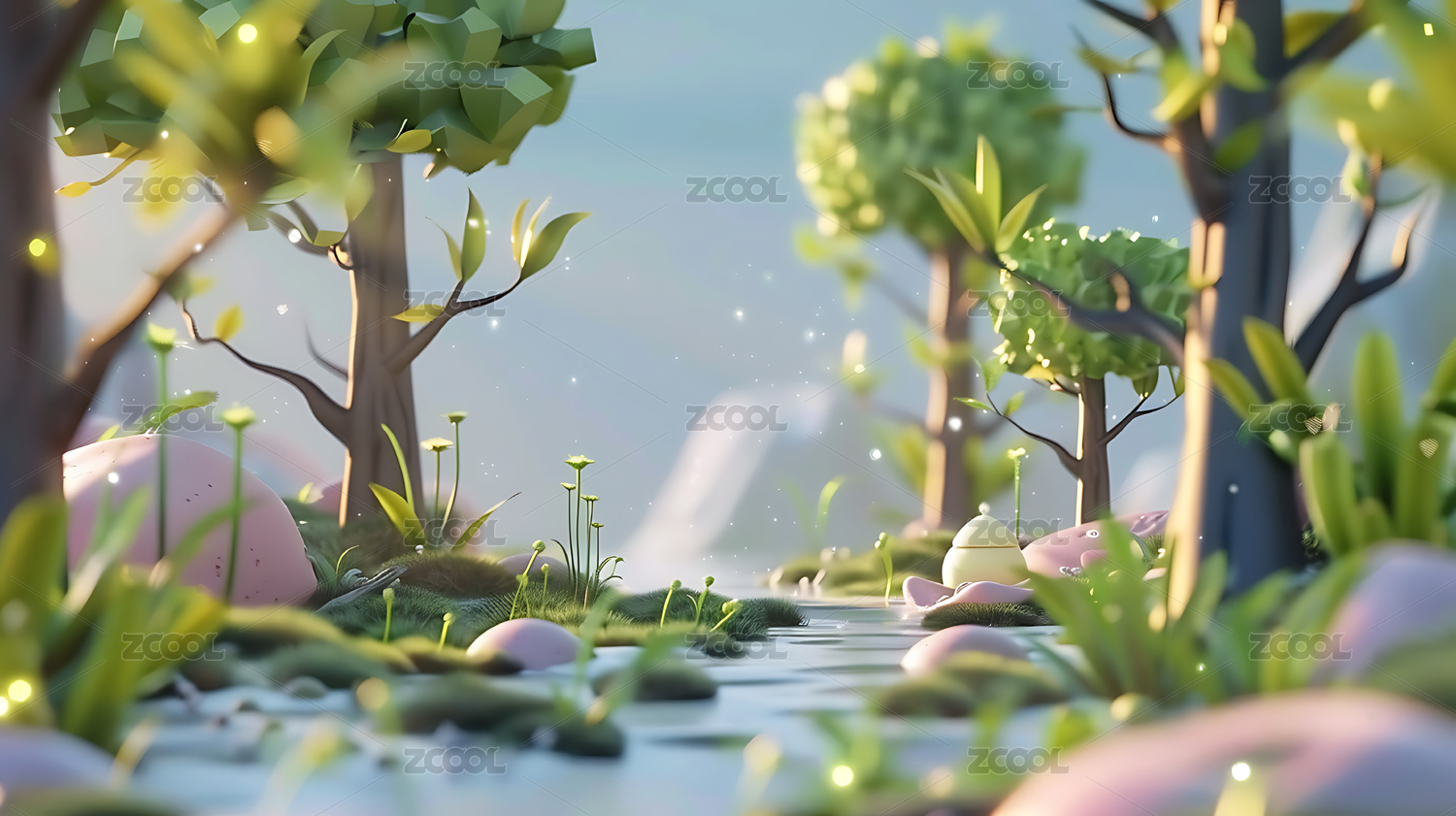 卡通,3d,乐园,梦幻,童话,清新,自然,展台,风景,春天