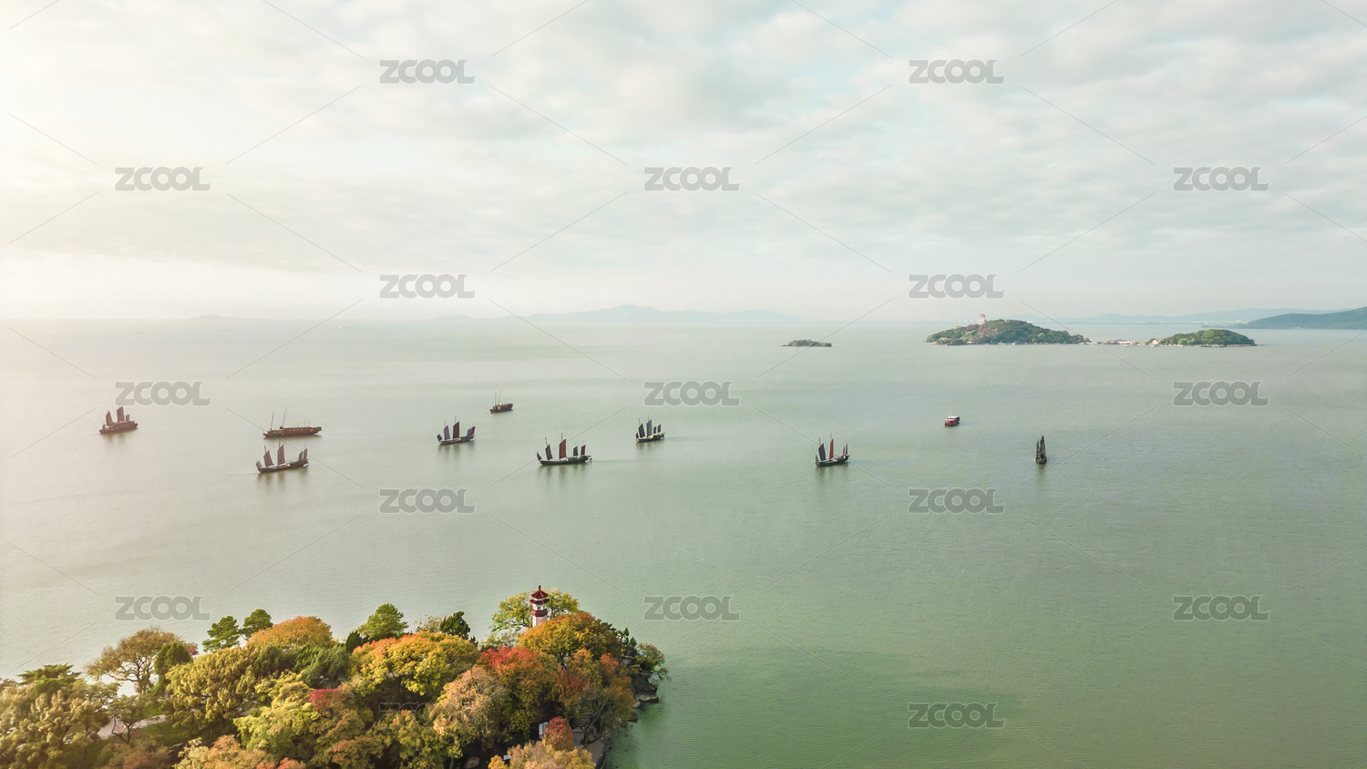 江苏省无锡市太湖鼋头渚风景区古帆船风光