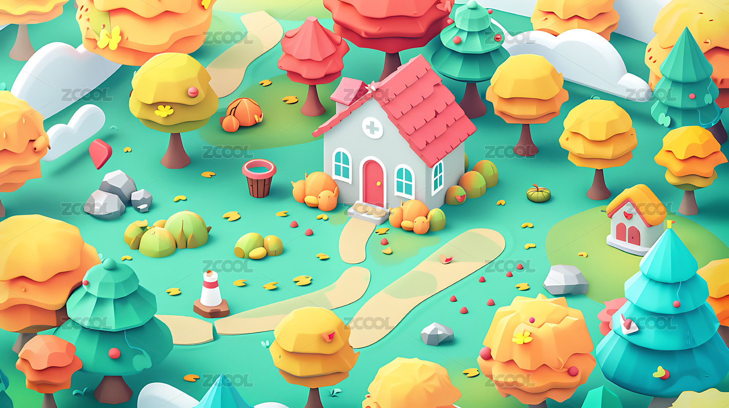 秋天,出游,户外,卡通,清新,可爱,背景,露营,壁纸,自然