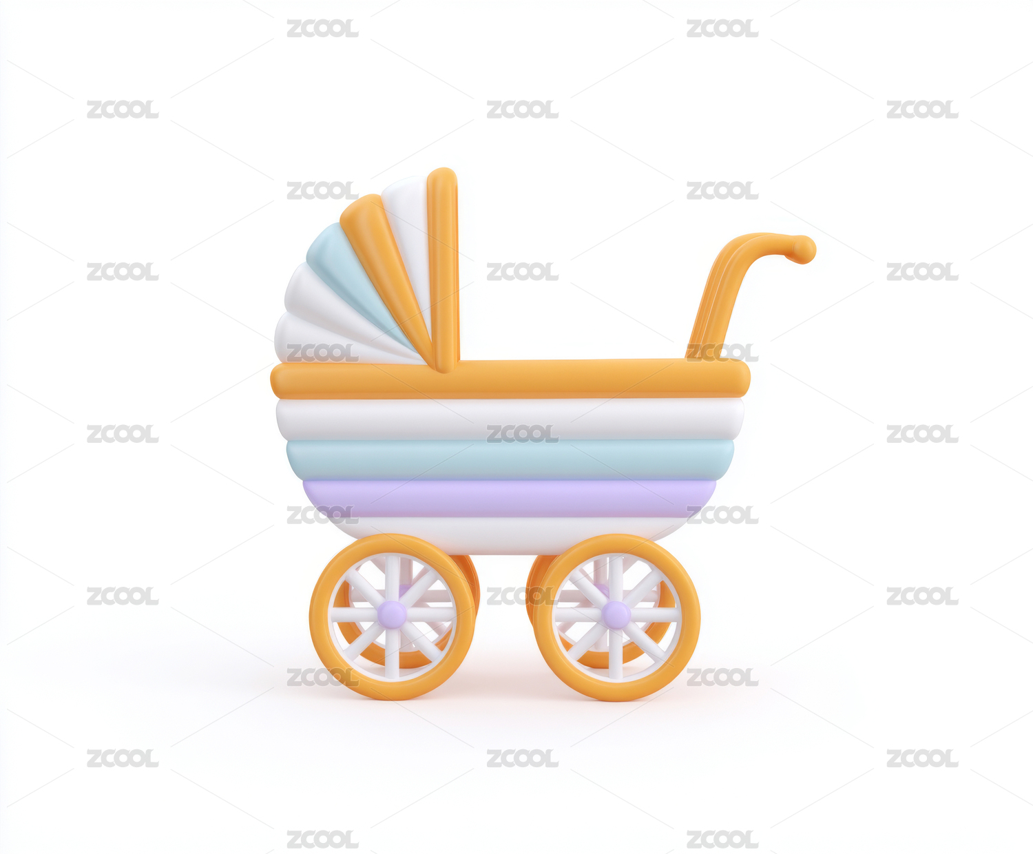 卡通可折叠婴儿推车3D渲染