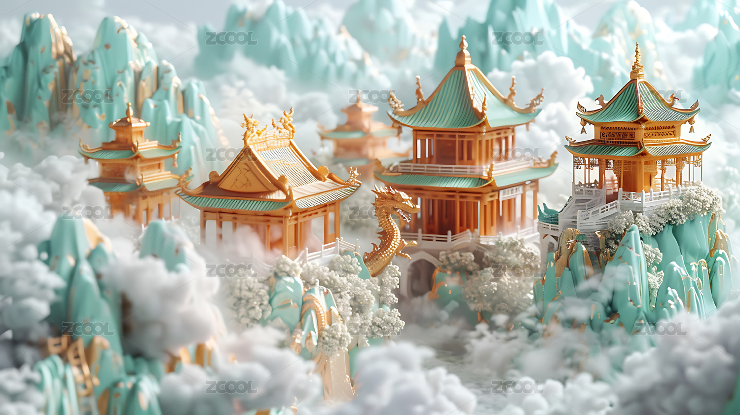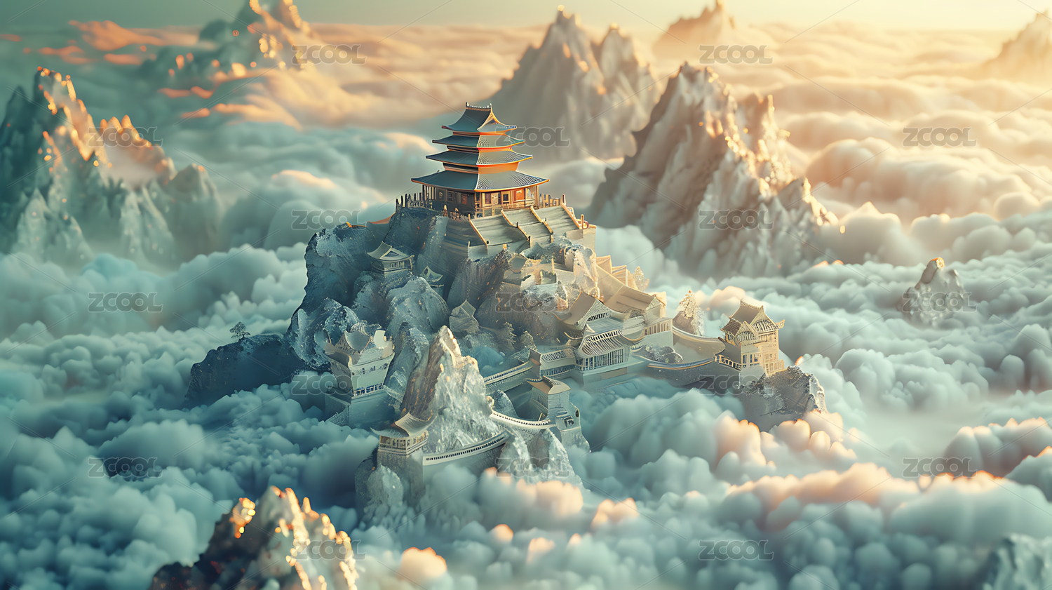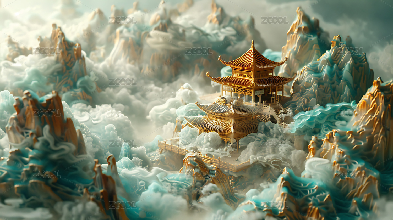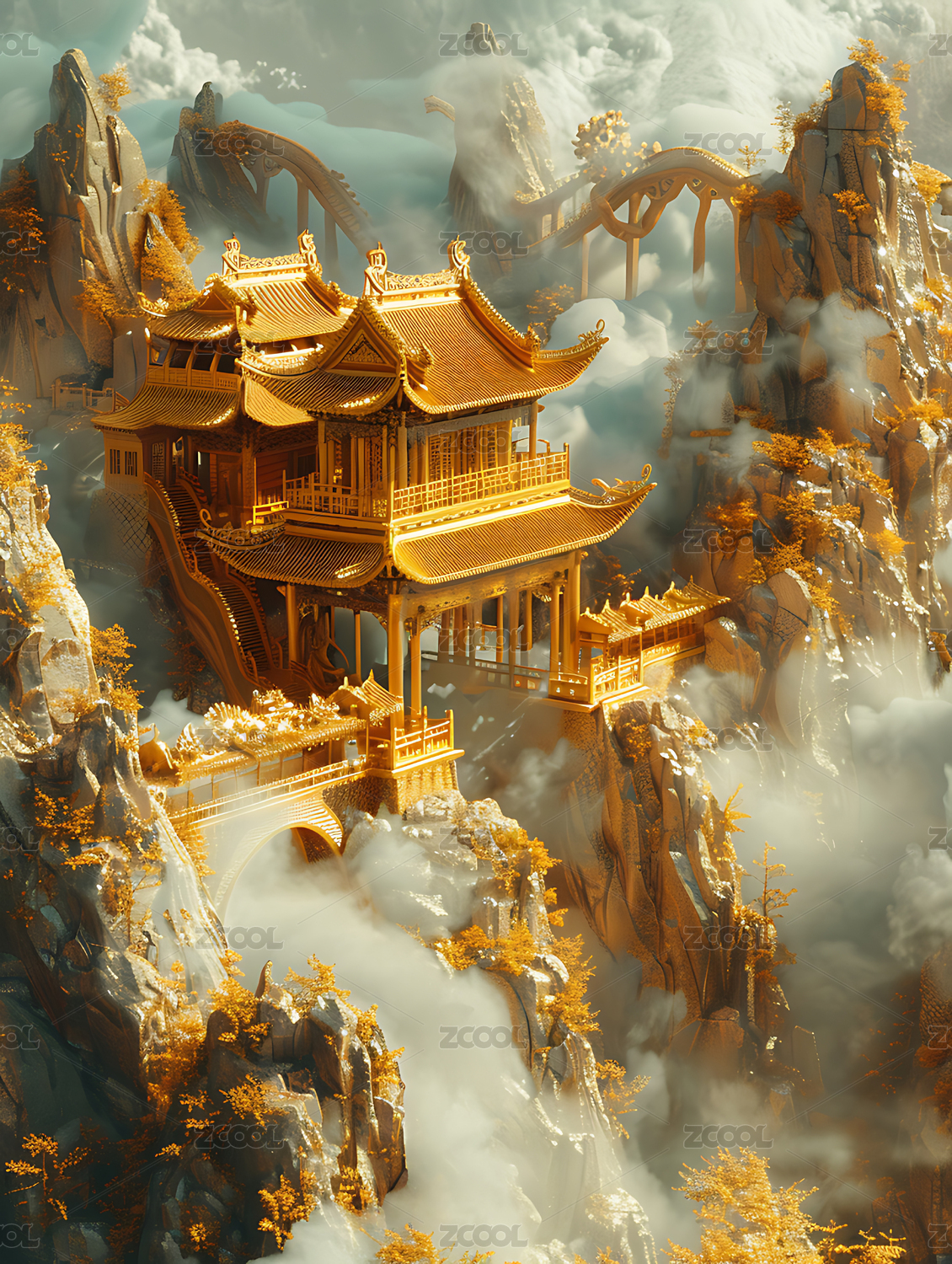 金色宫殿仙境山峦奇景