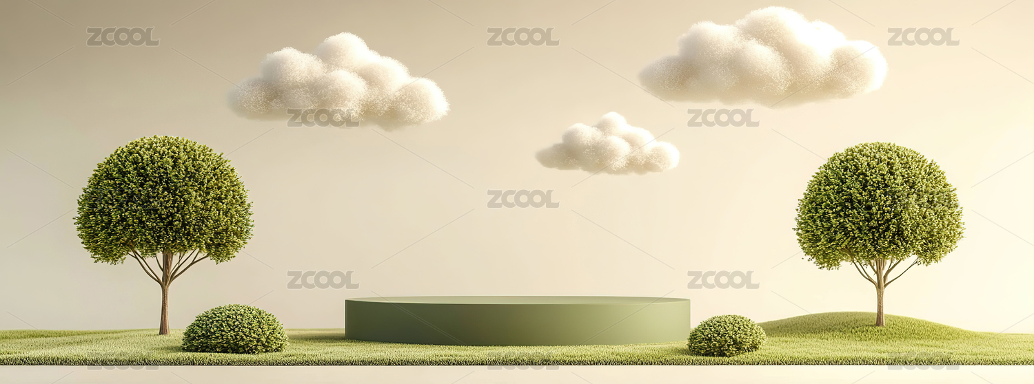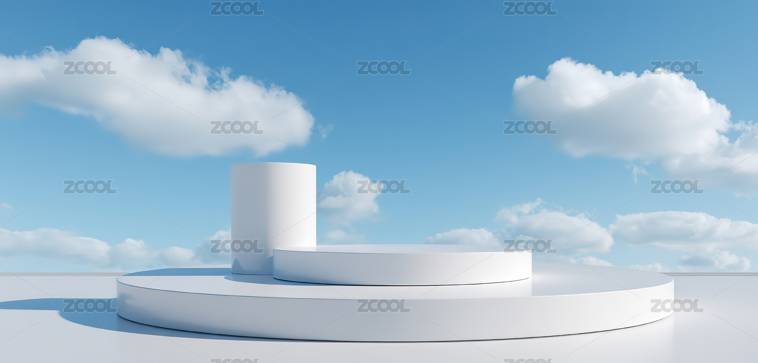 天空白云背景圆形电商产品展台