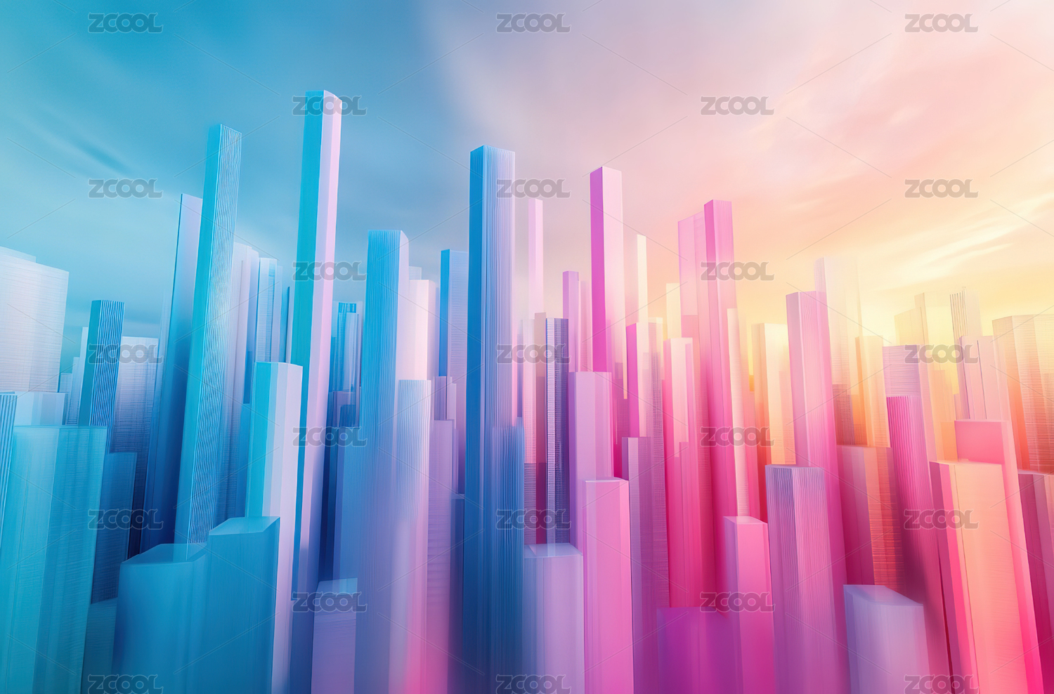 彩色渐变城市天际线
