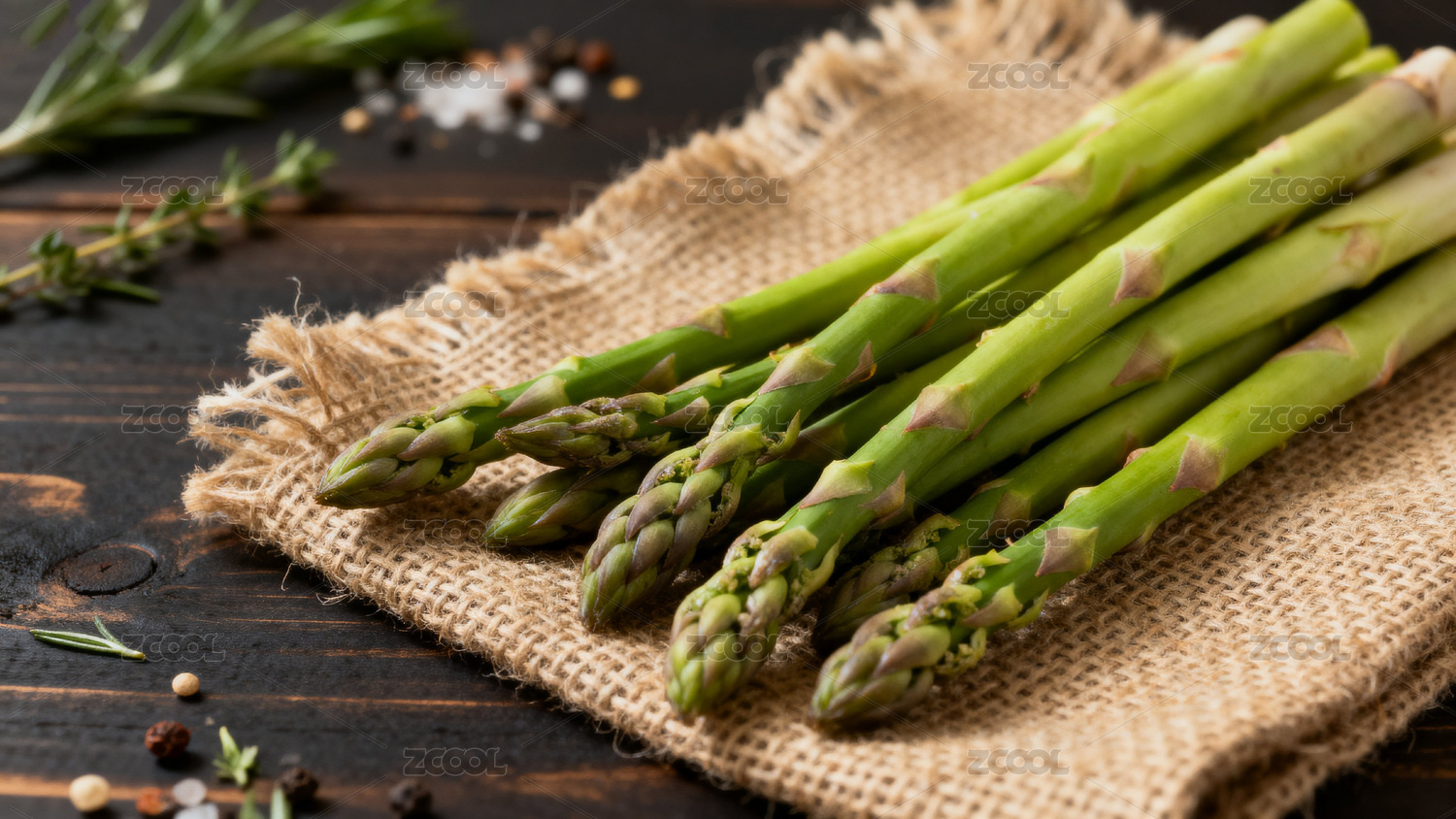 新鲜芦笋摆放在木质桌面上