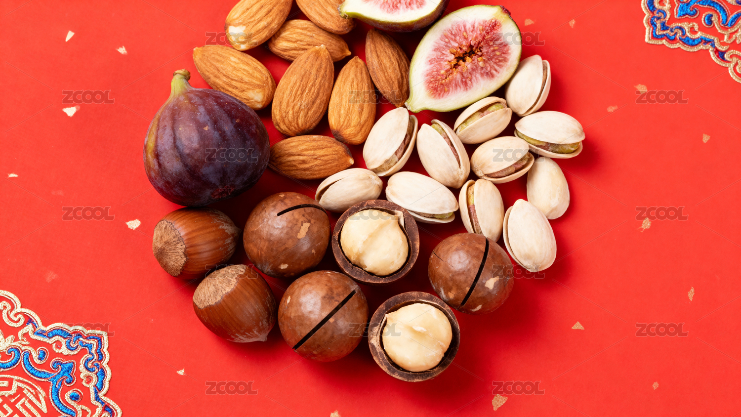 开心果零食年货掉落红色背景瞬间高速抓拍