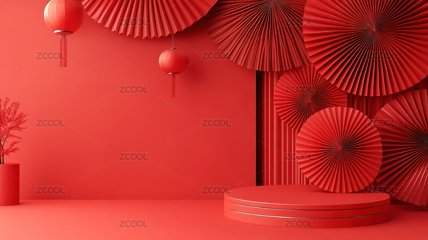 绿色,圆形,背景,舞台,传统,节日,商品,简单,海报,灯笼