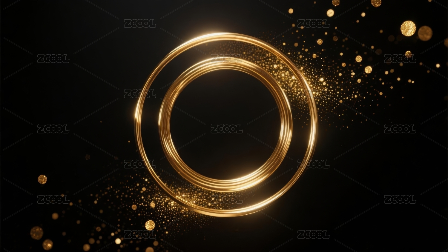 黑色背景金色发光圆环,干净抽象背景