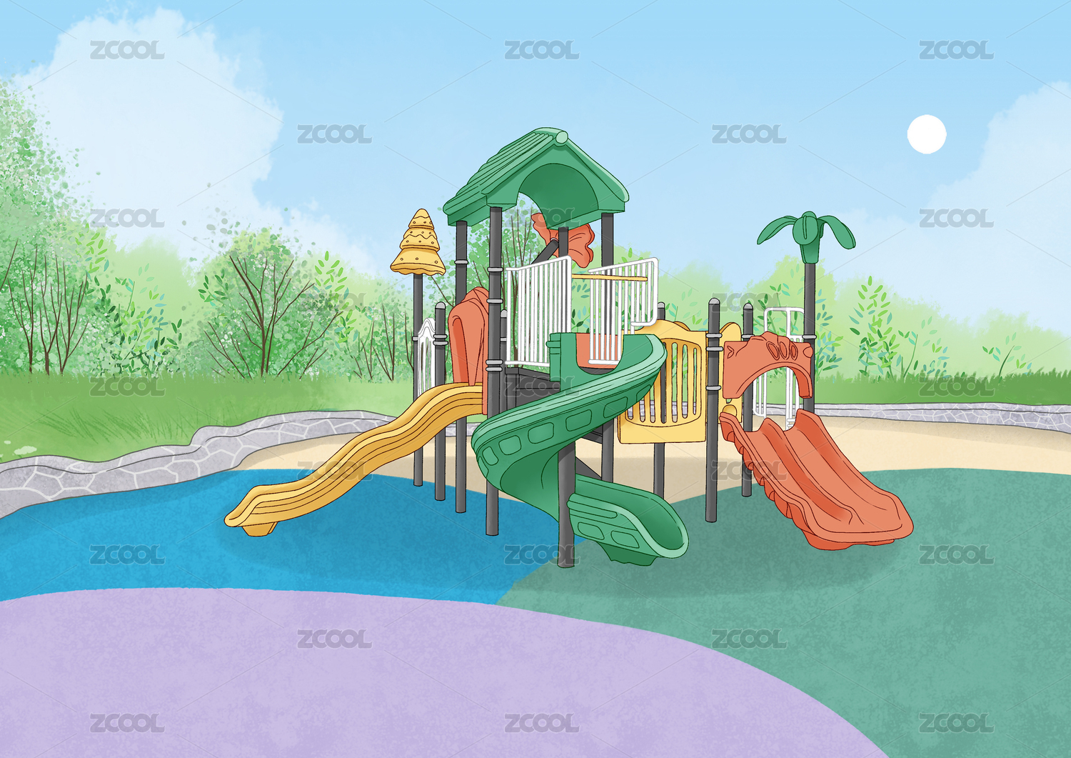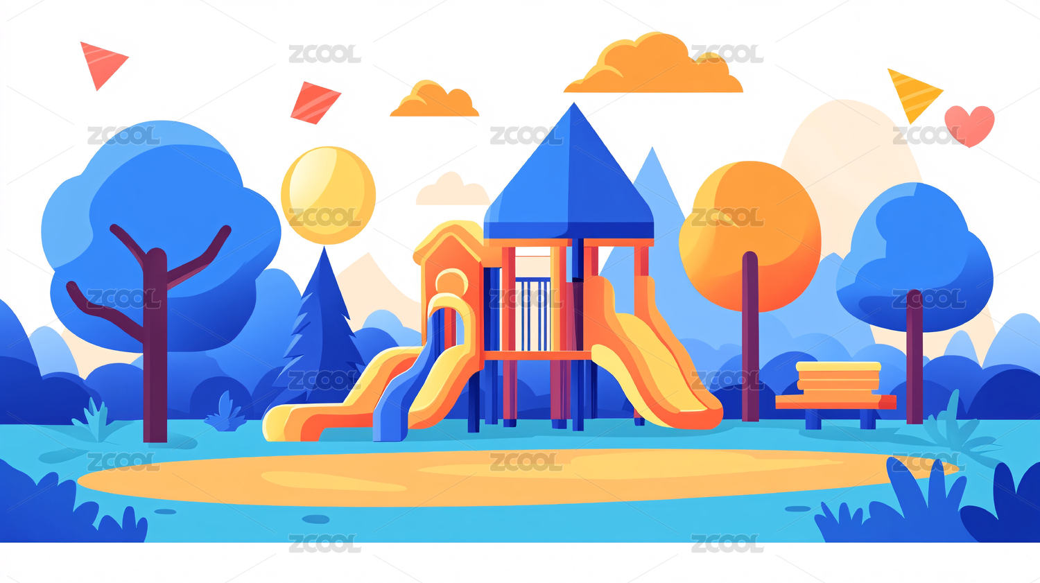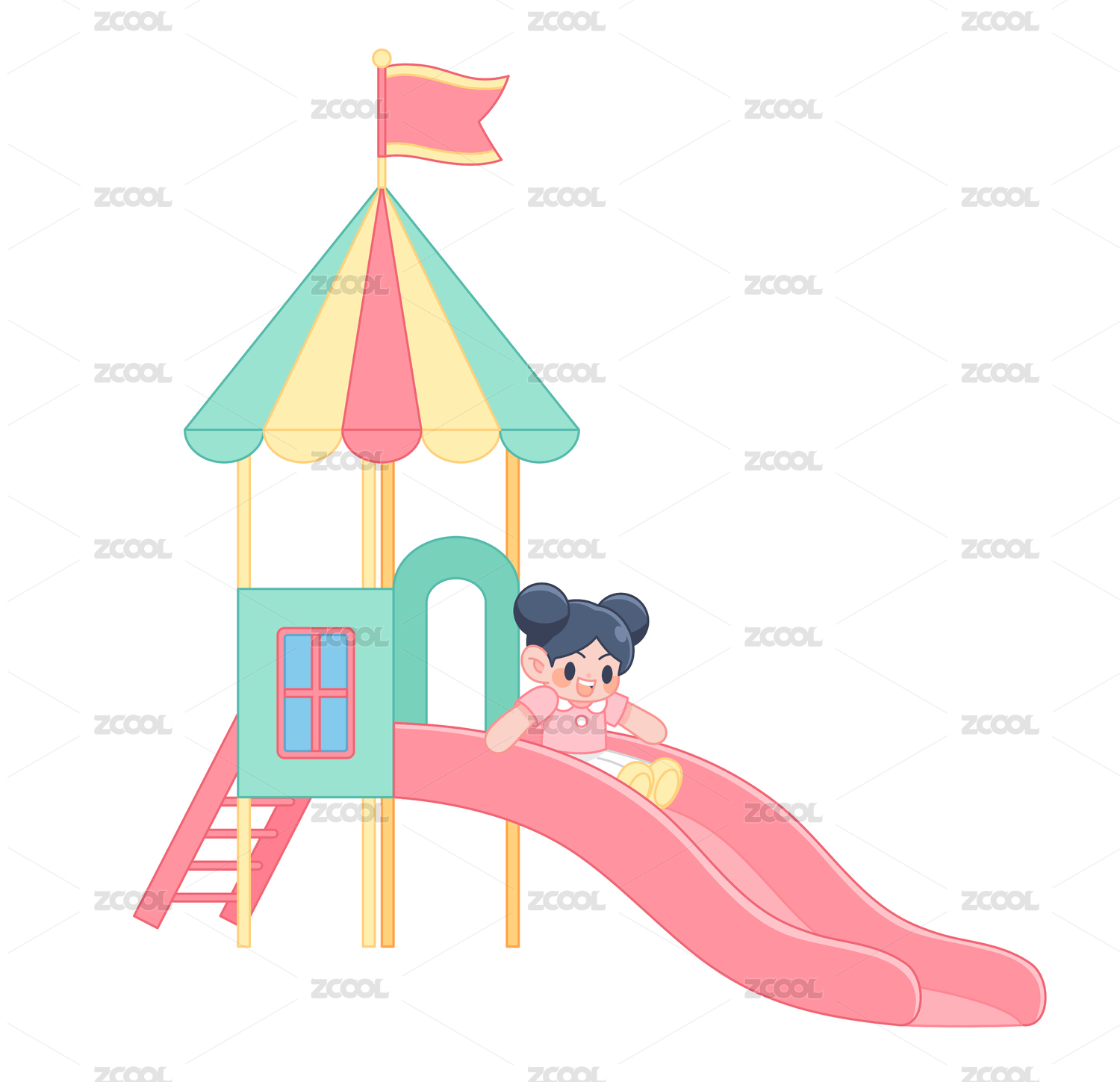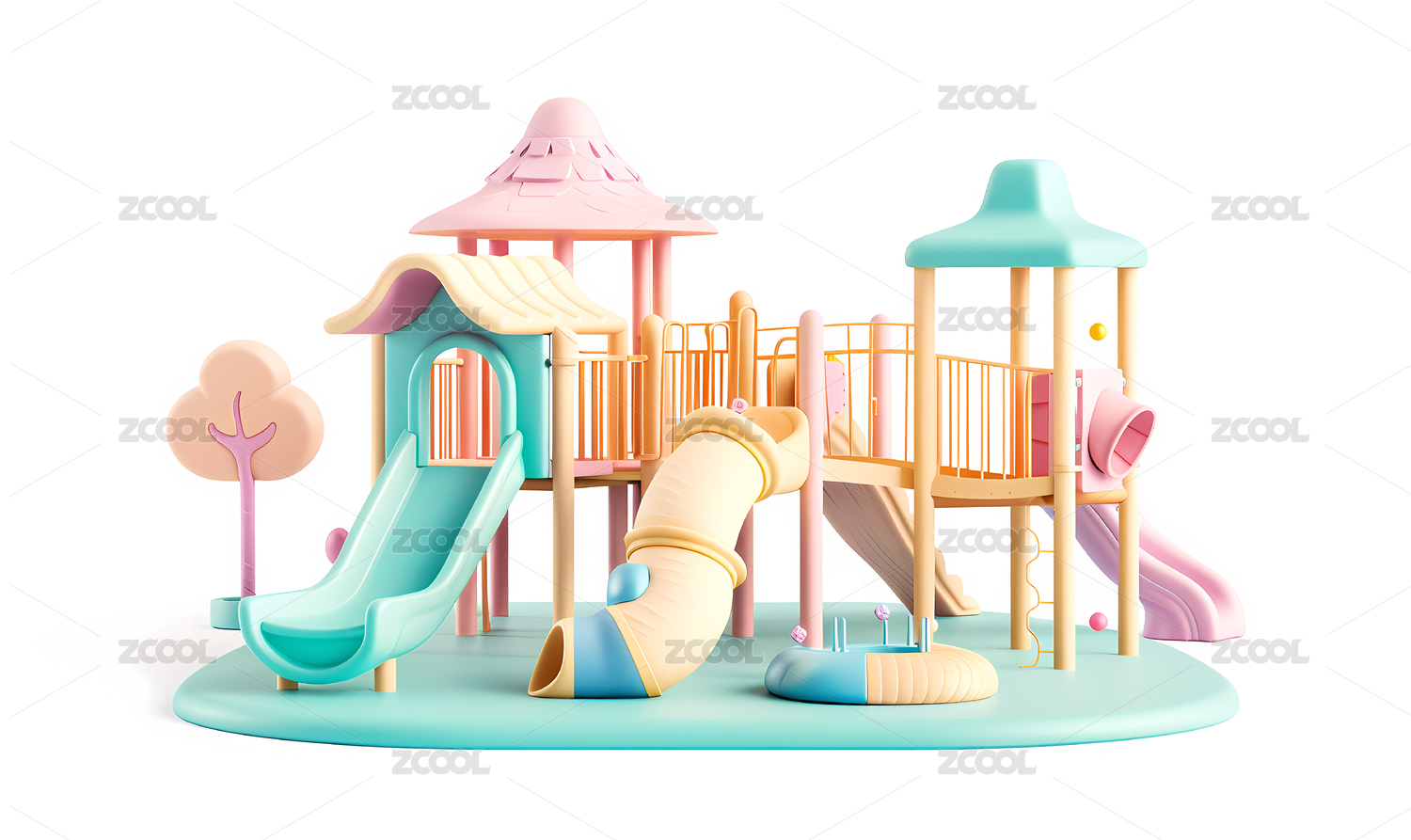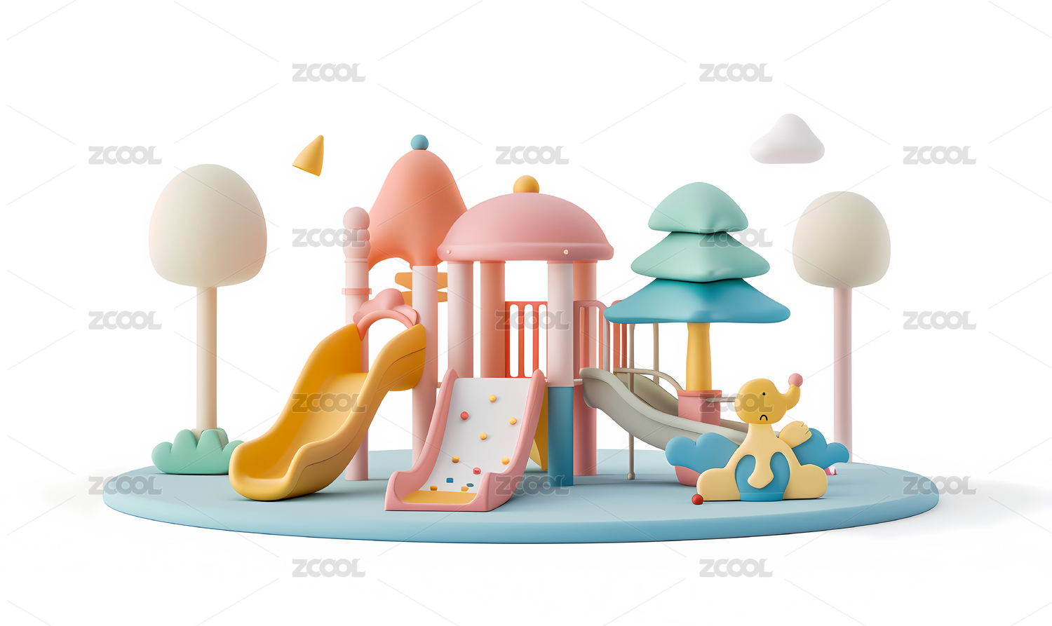六一儿童节亲子乐园儿童游乐场童年3D插画