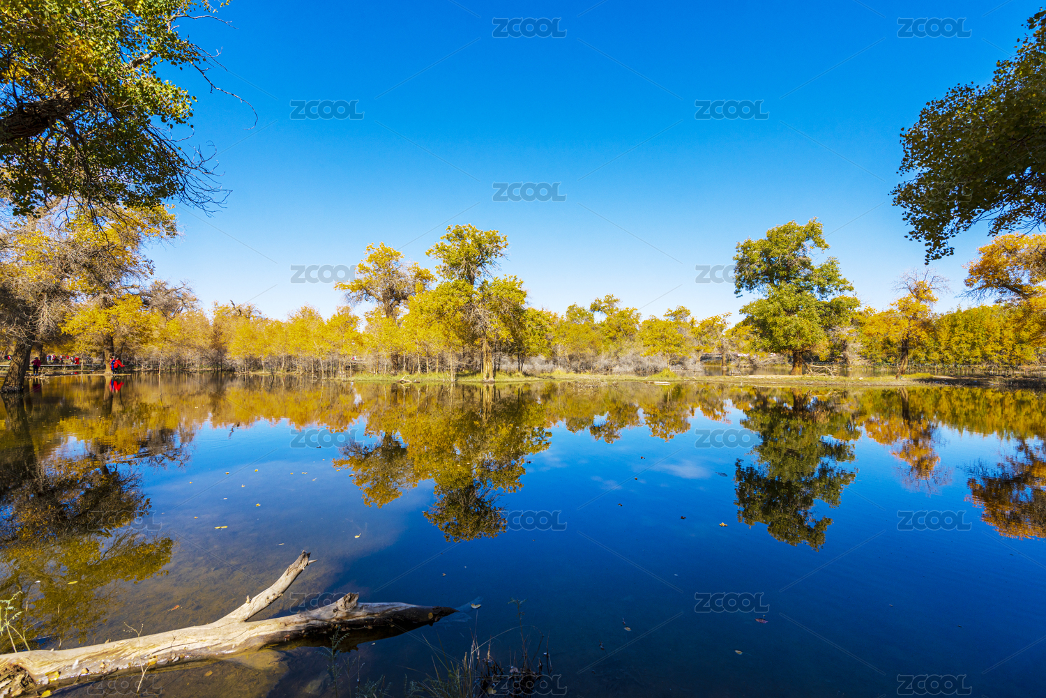 中国内蒙额济纳旗秋季金黄胡杨林湖边倒影风光