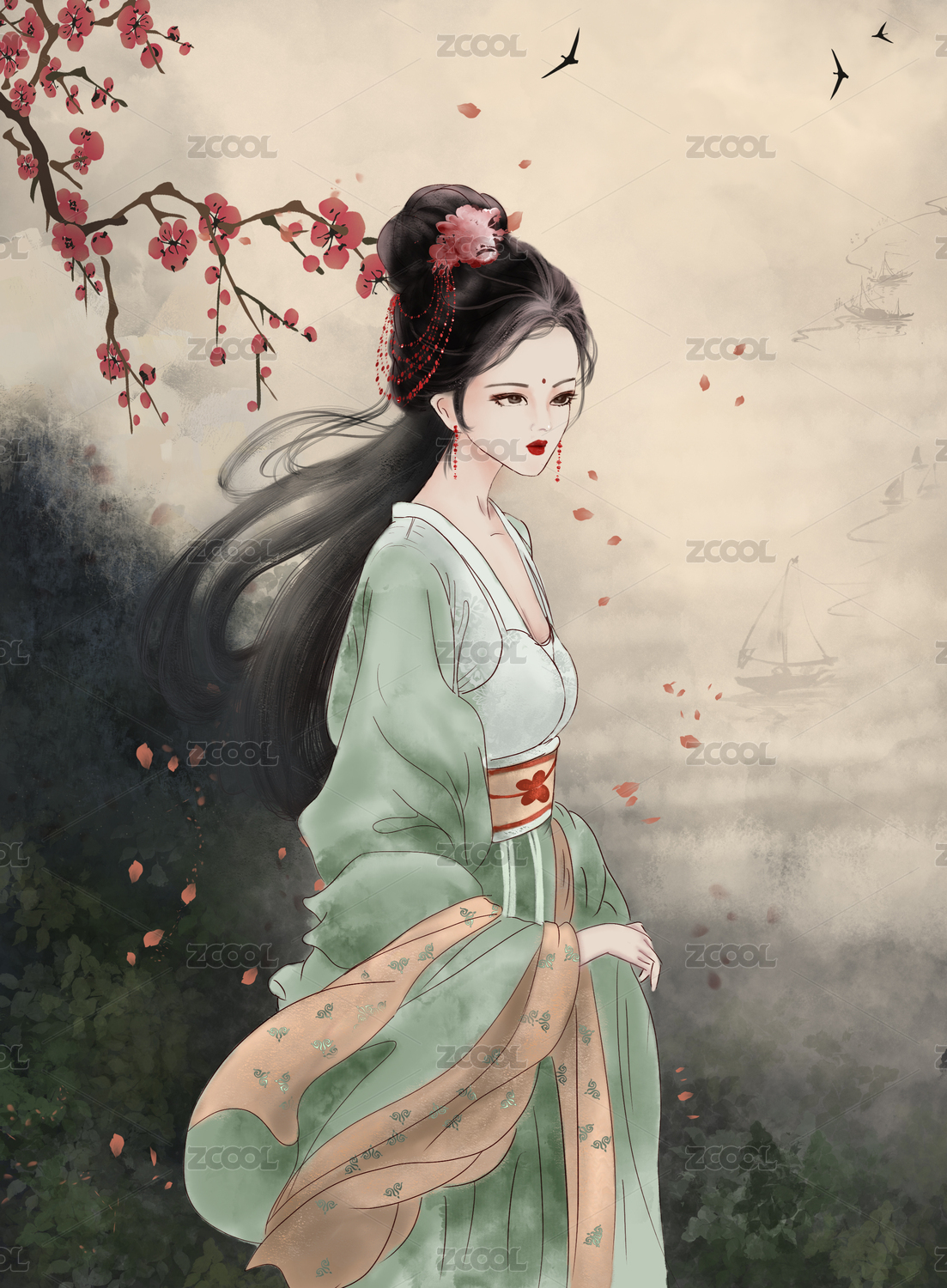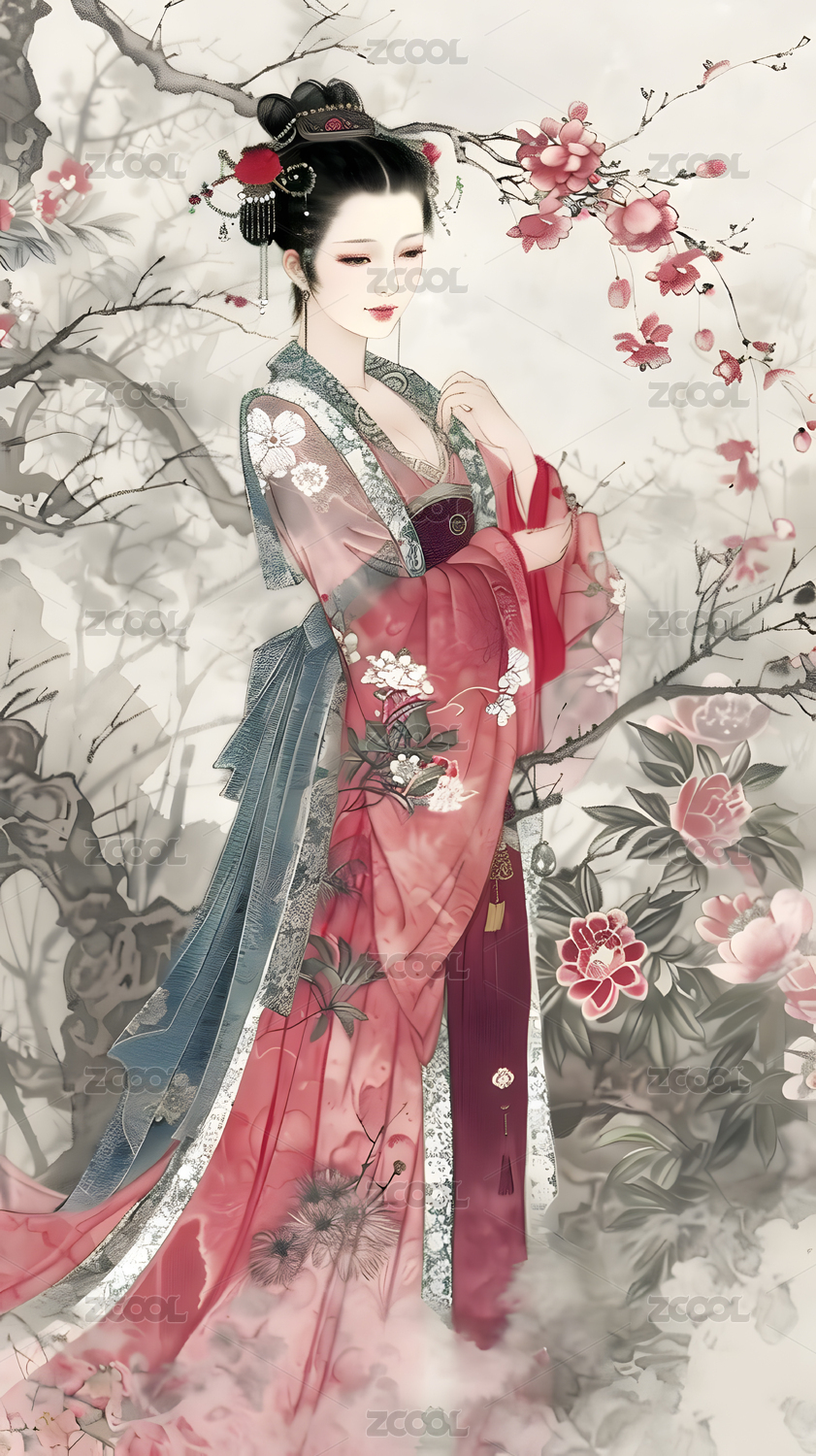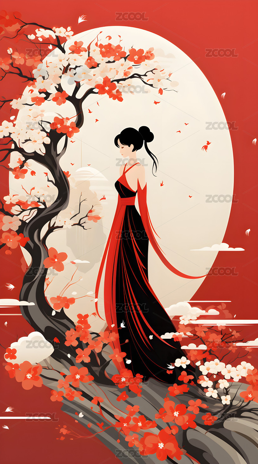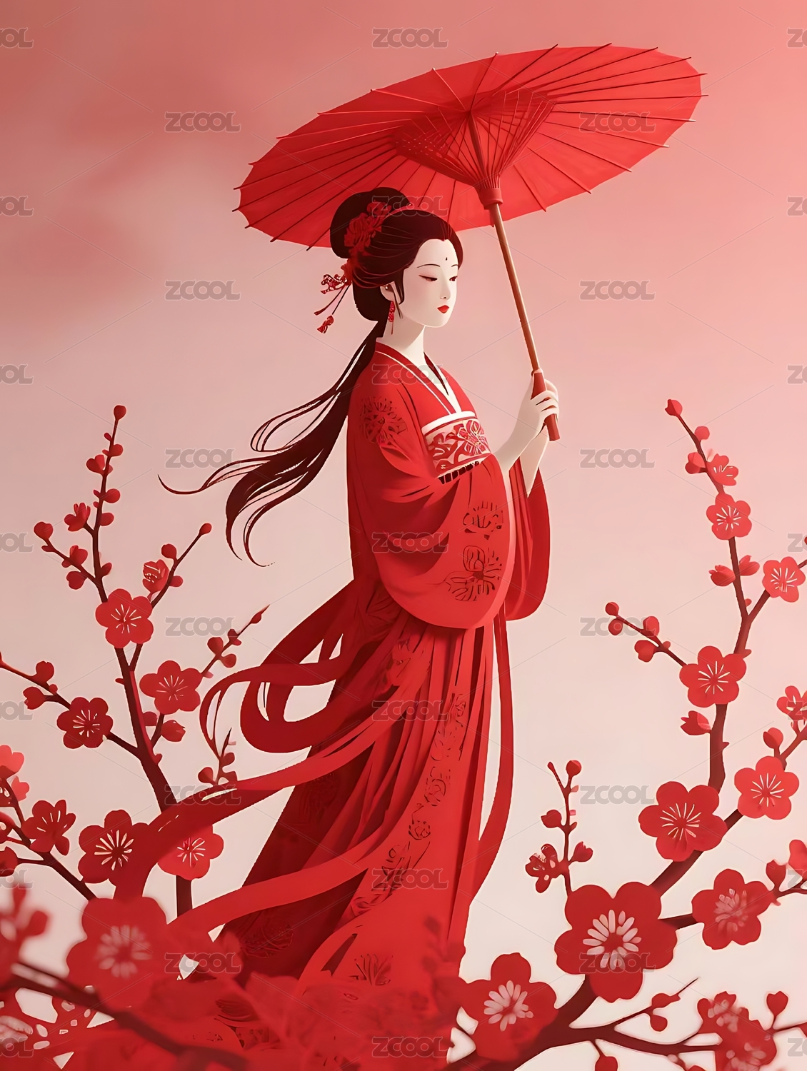 AIGC,美女,中国风,华丽,长发,古风,灯笼