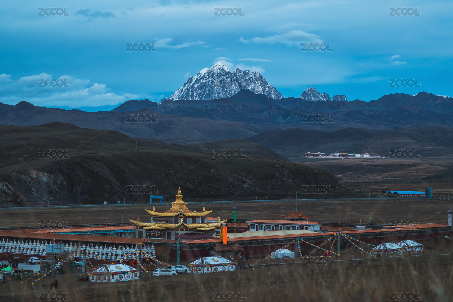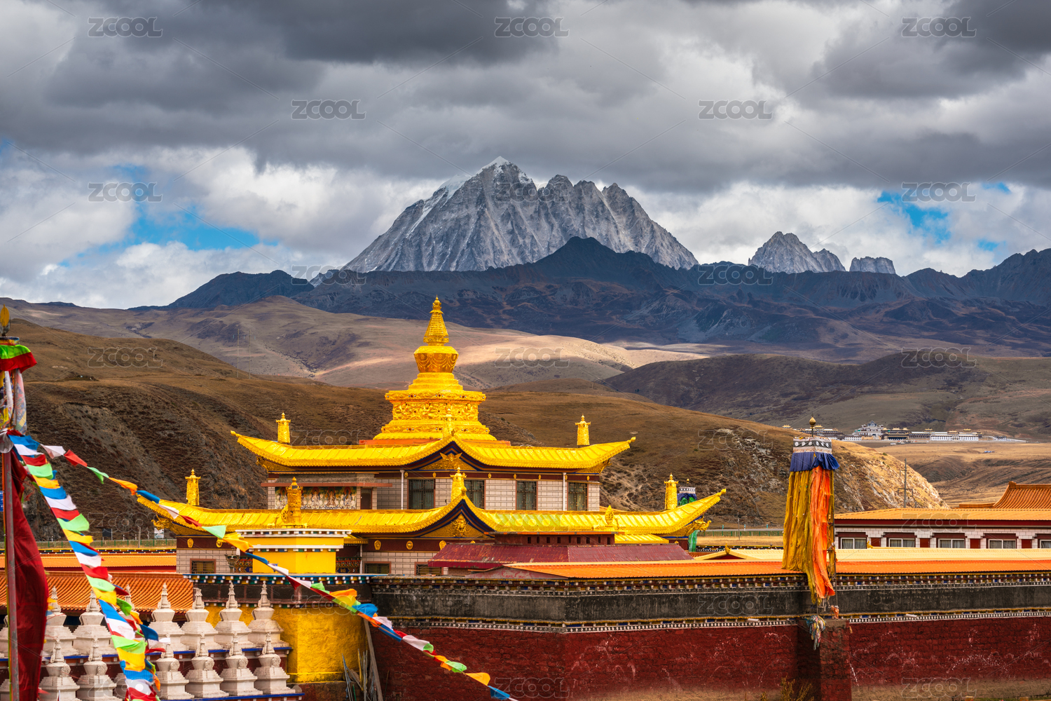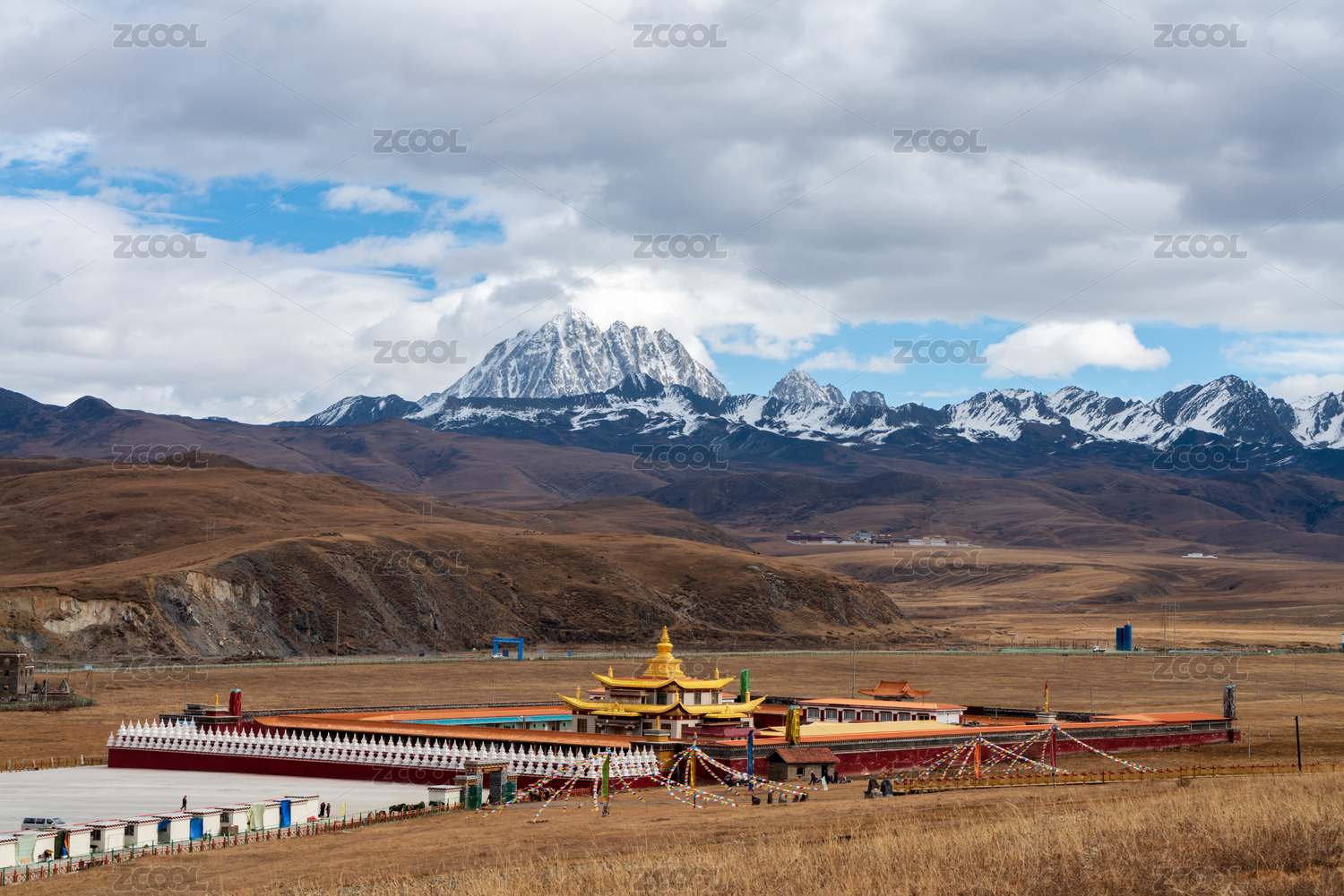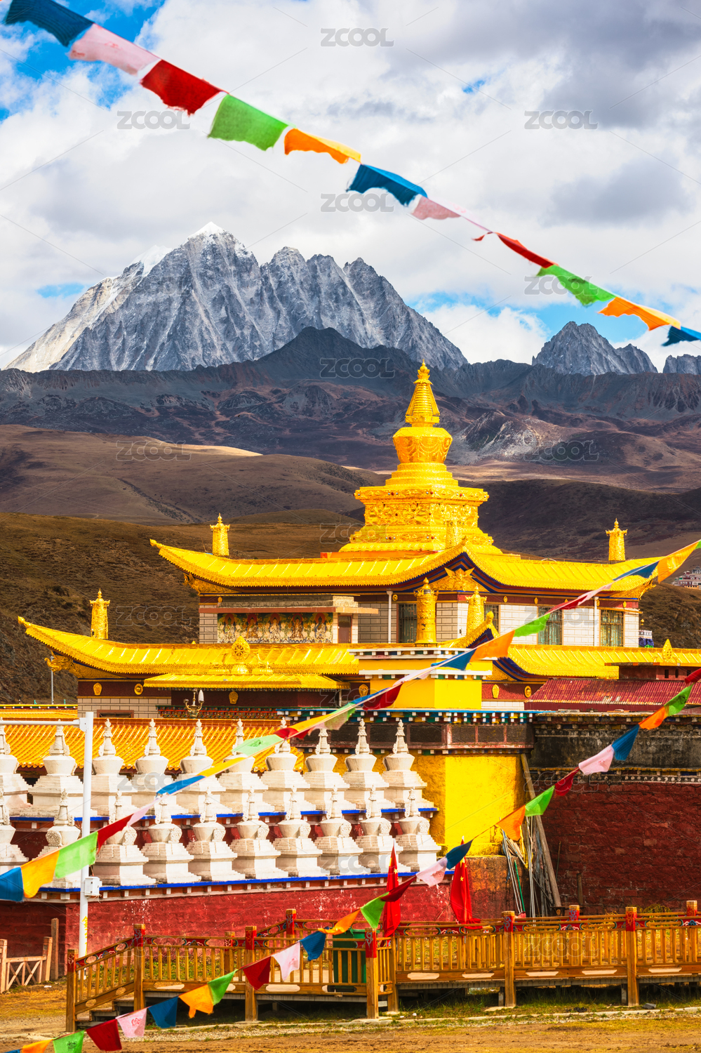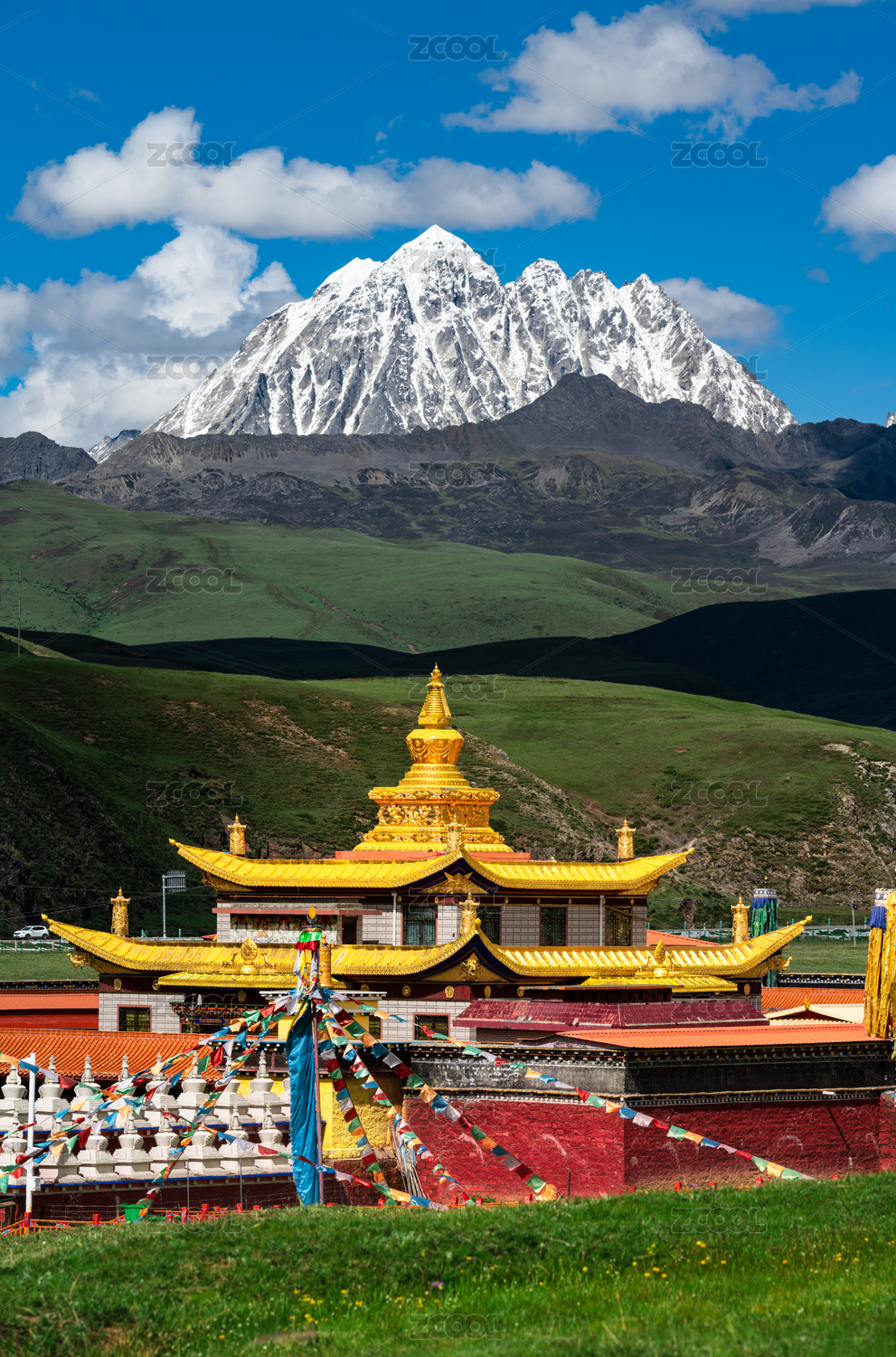 中国四川甘孜康定县塔公寺亚拉雪山自然建筑风光