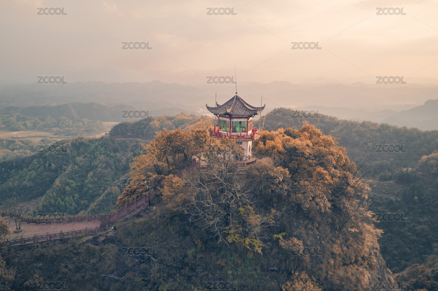 中国四川成都青城山老君阁冬季彩林风光航拍