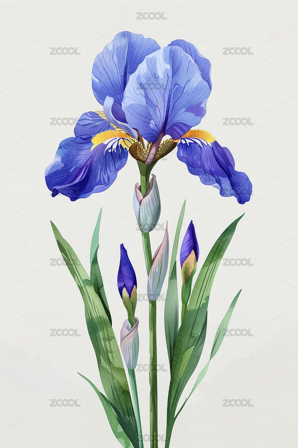 蓝色鸢尾花在柔和背景下的优雅绽放