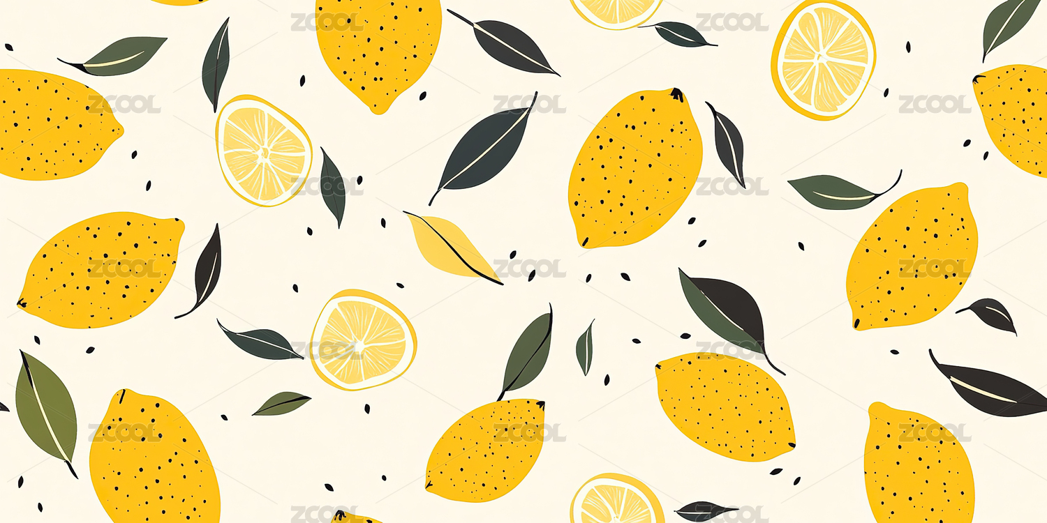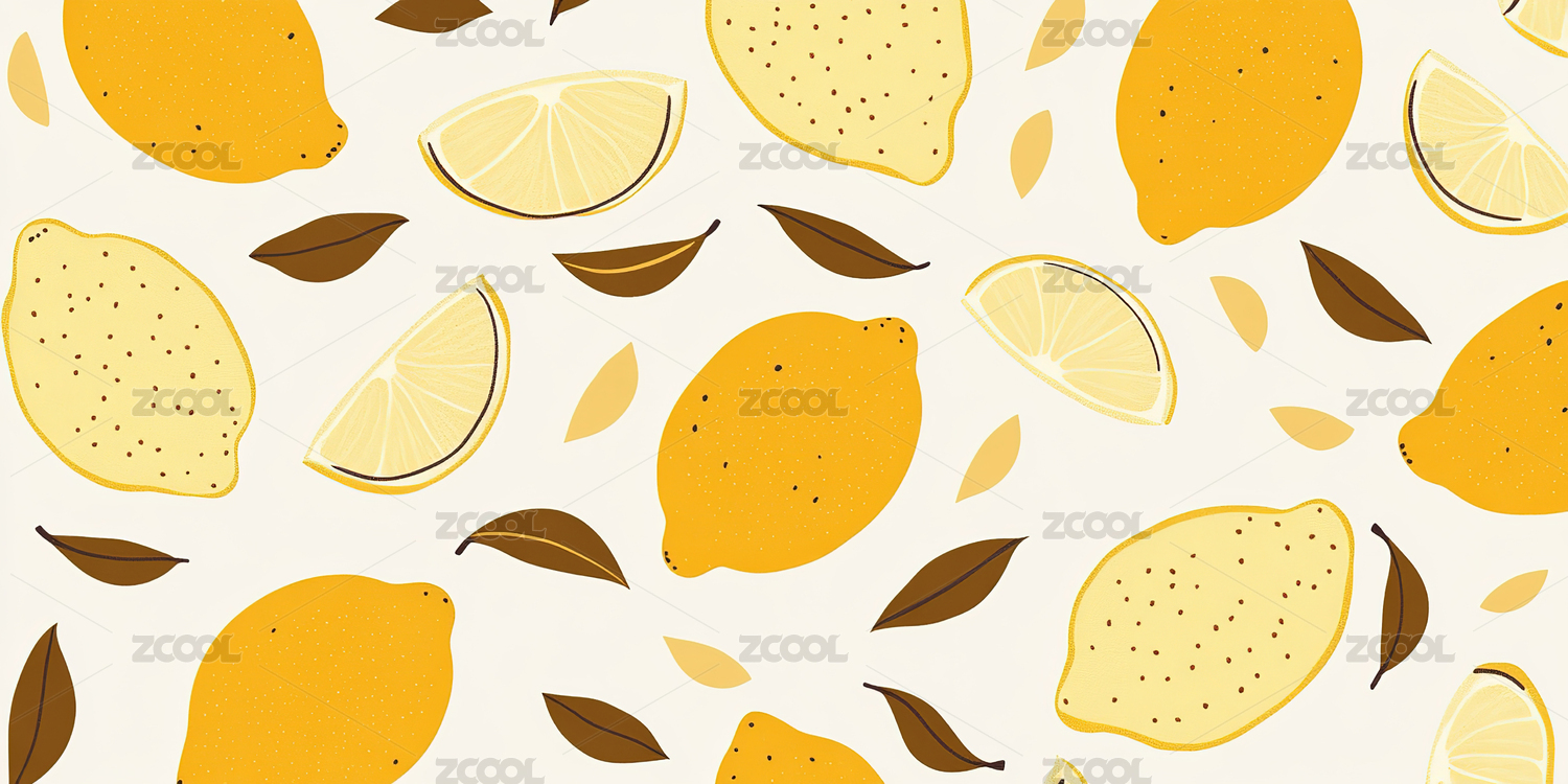 柠檬与绿叶图案背景