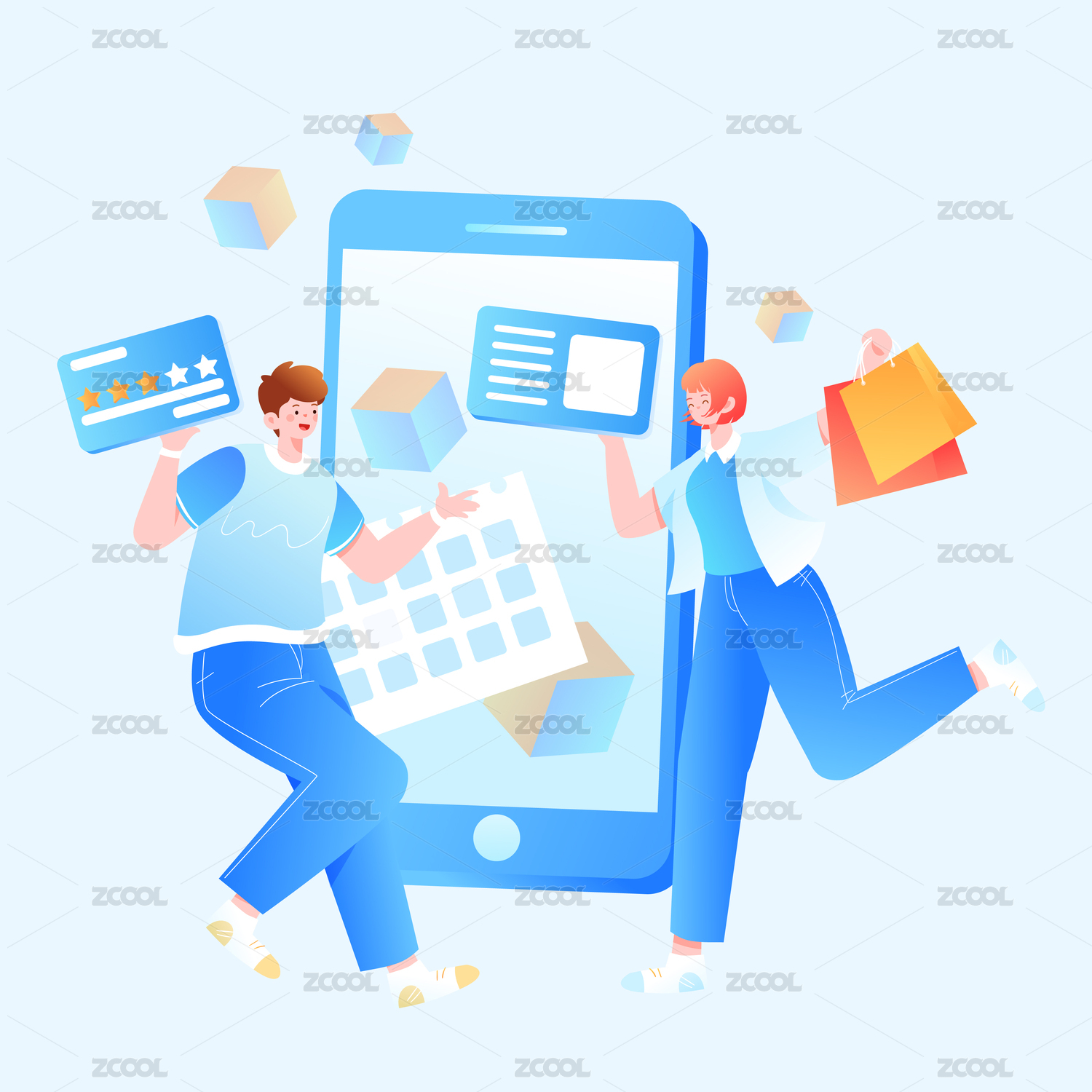 电商购物人物插画