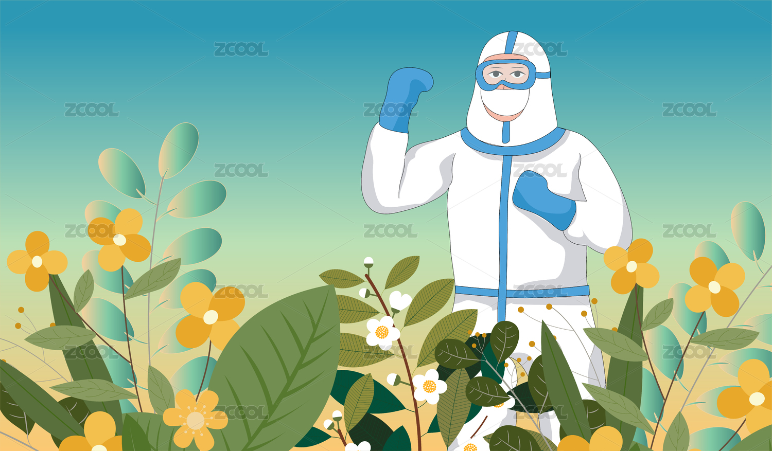 疫情医疗抗疫防护矢量插画