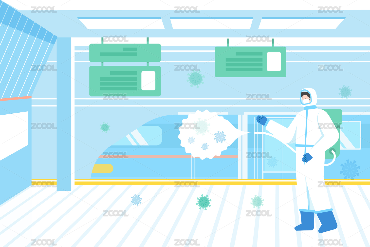 消毒动车出行矢量插画