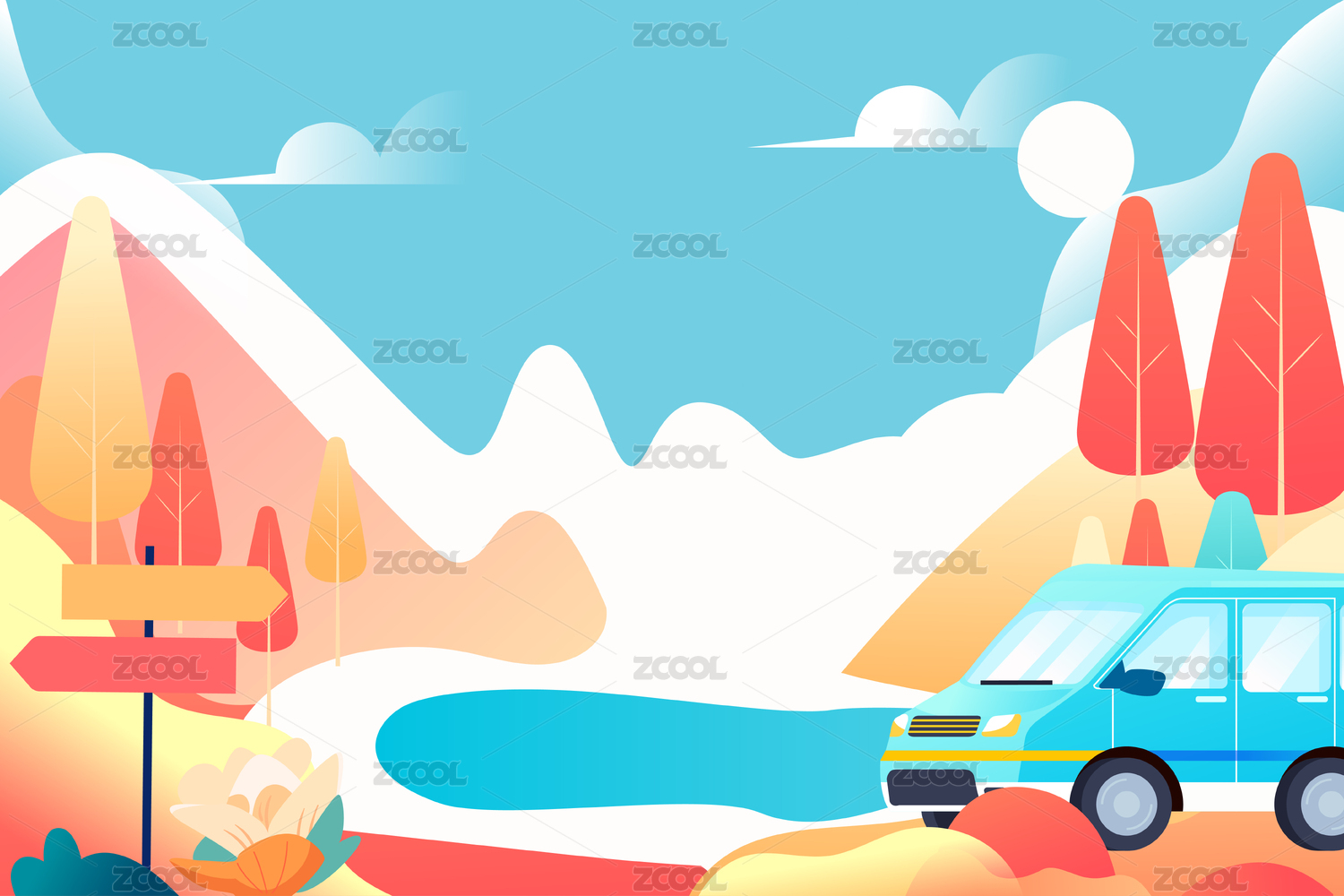 汽车旅游假期自驾游夏令营户外出行放假背景