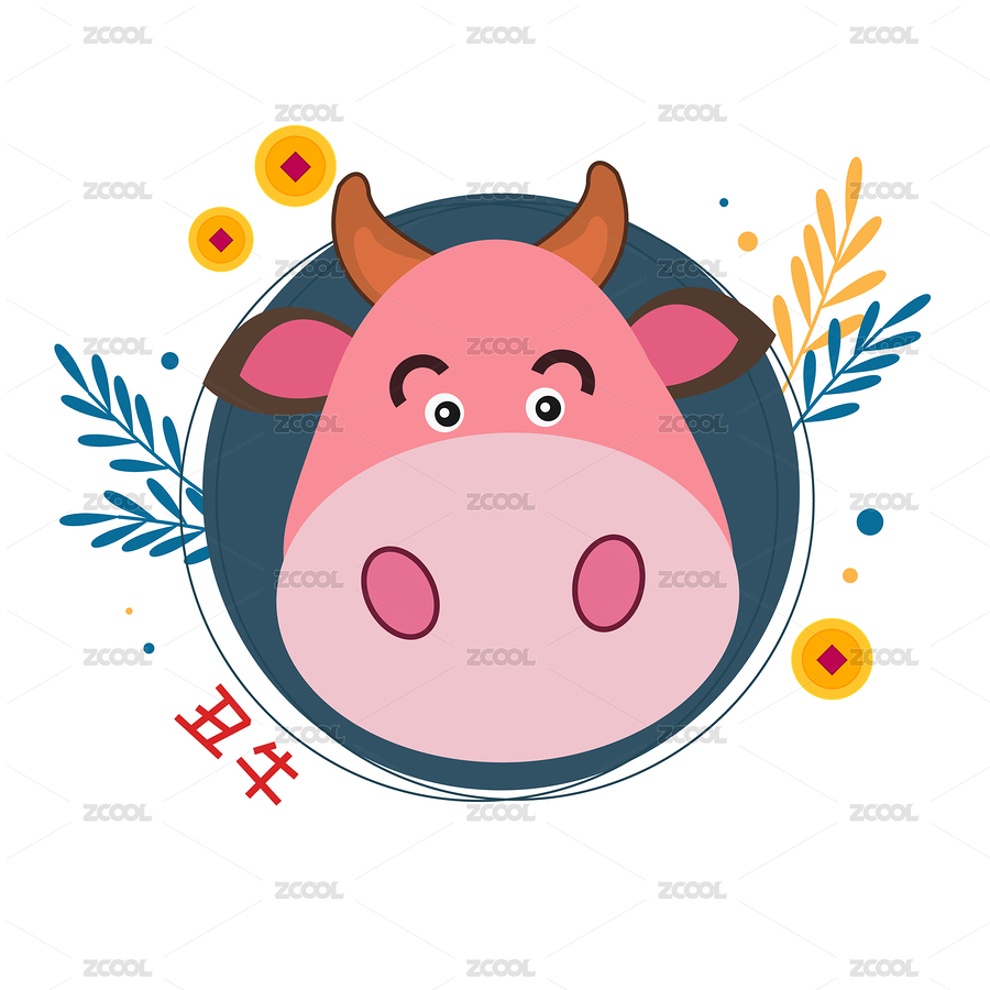 扁平风格牛年可爱牛头矢量插画
