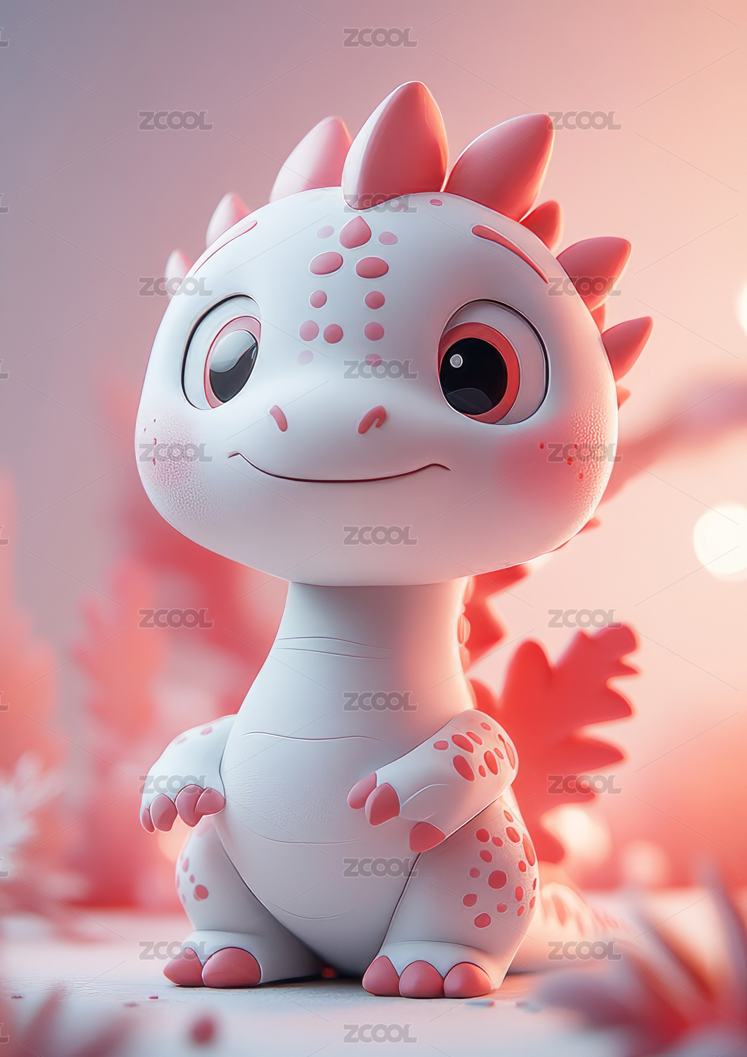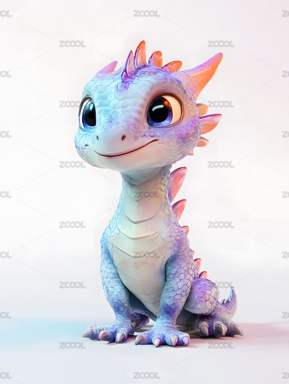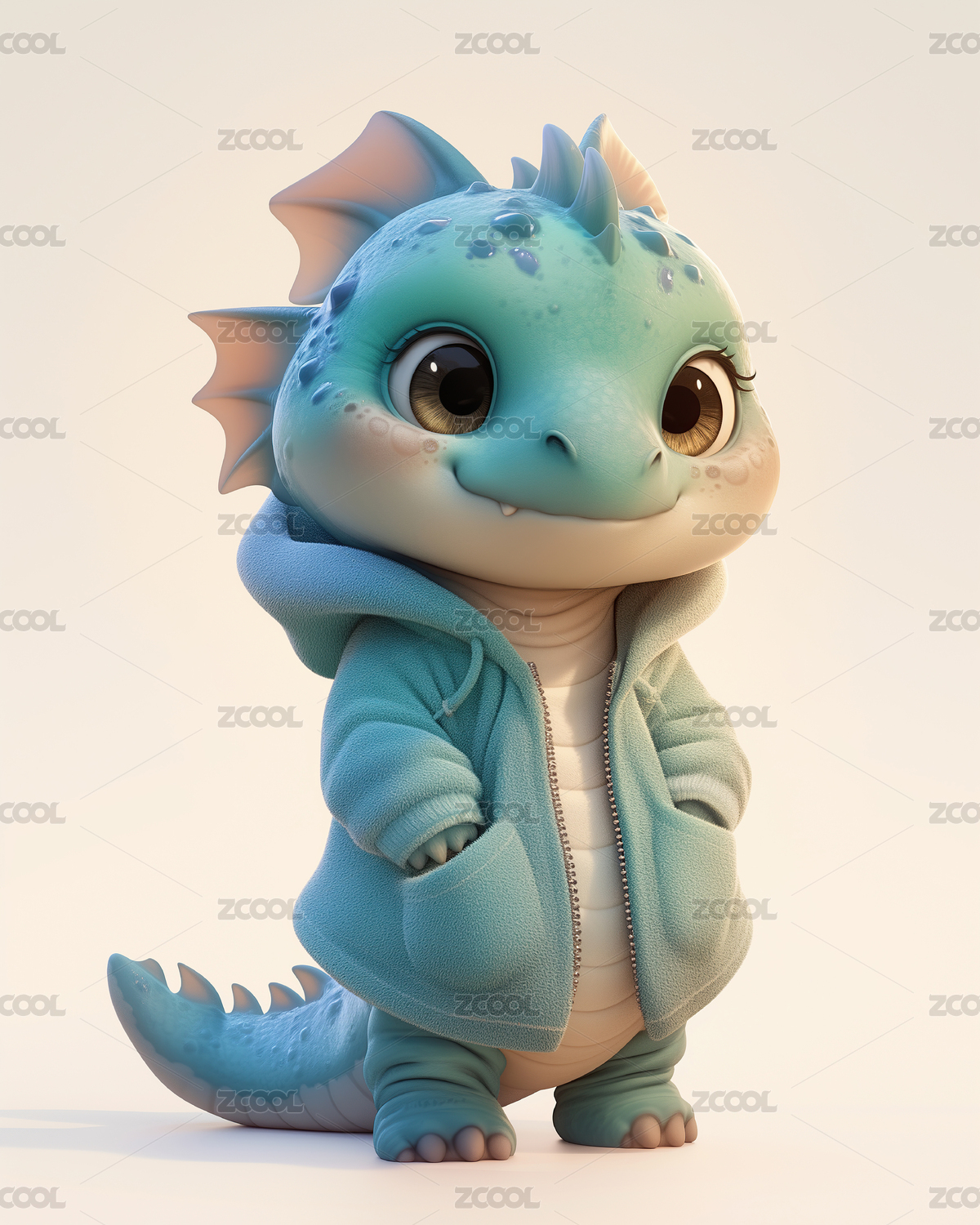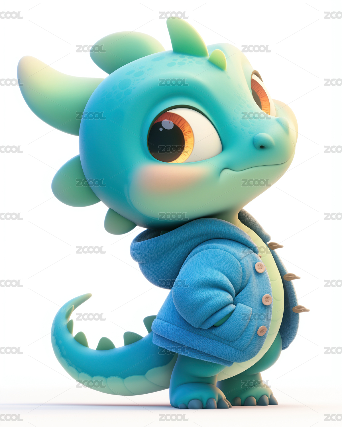 可爱卡通龙年动物形象的吉祥物3D插画