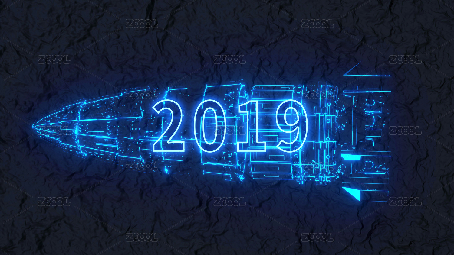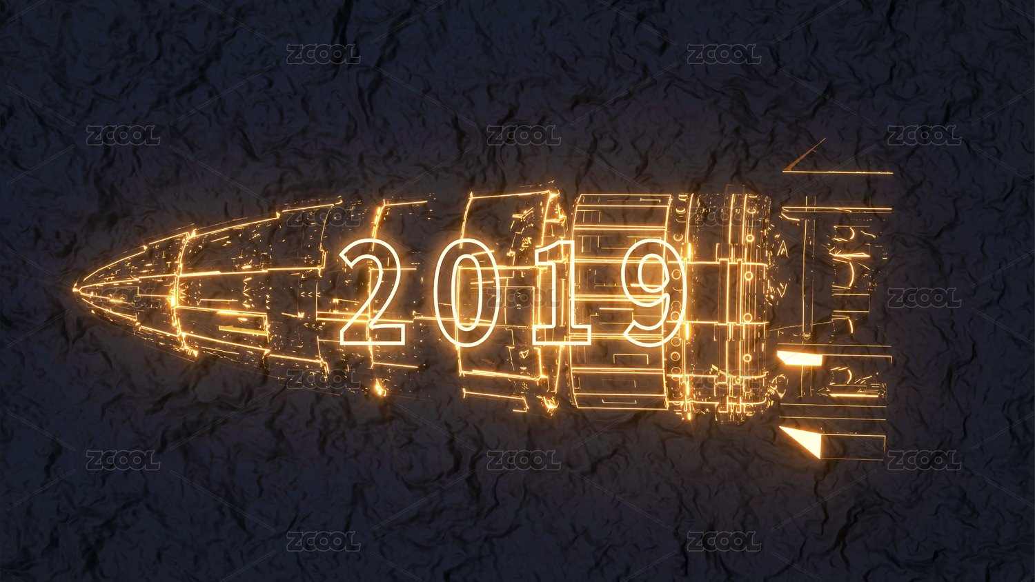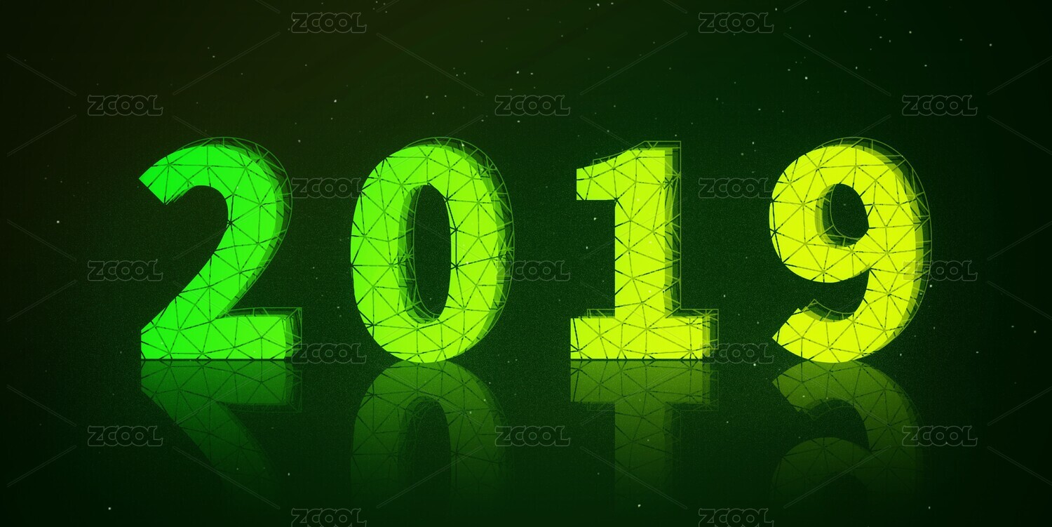 金色的2019年3d数字在黑色带有金属颗粒的创意背景上,新年快乐的概念