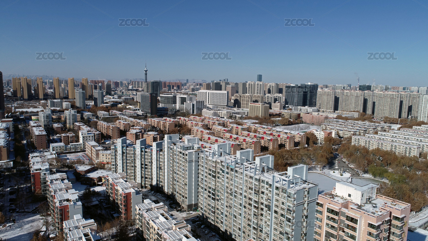 城市,现代,建筑,风景,蓝天,冬天,雪景,航拍,石家庄,天际线