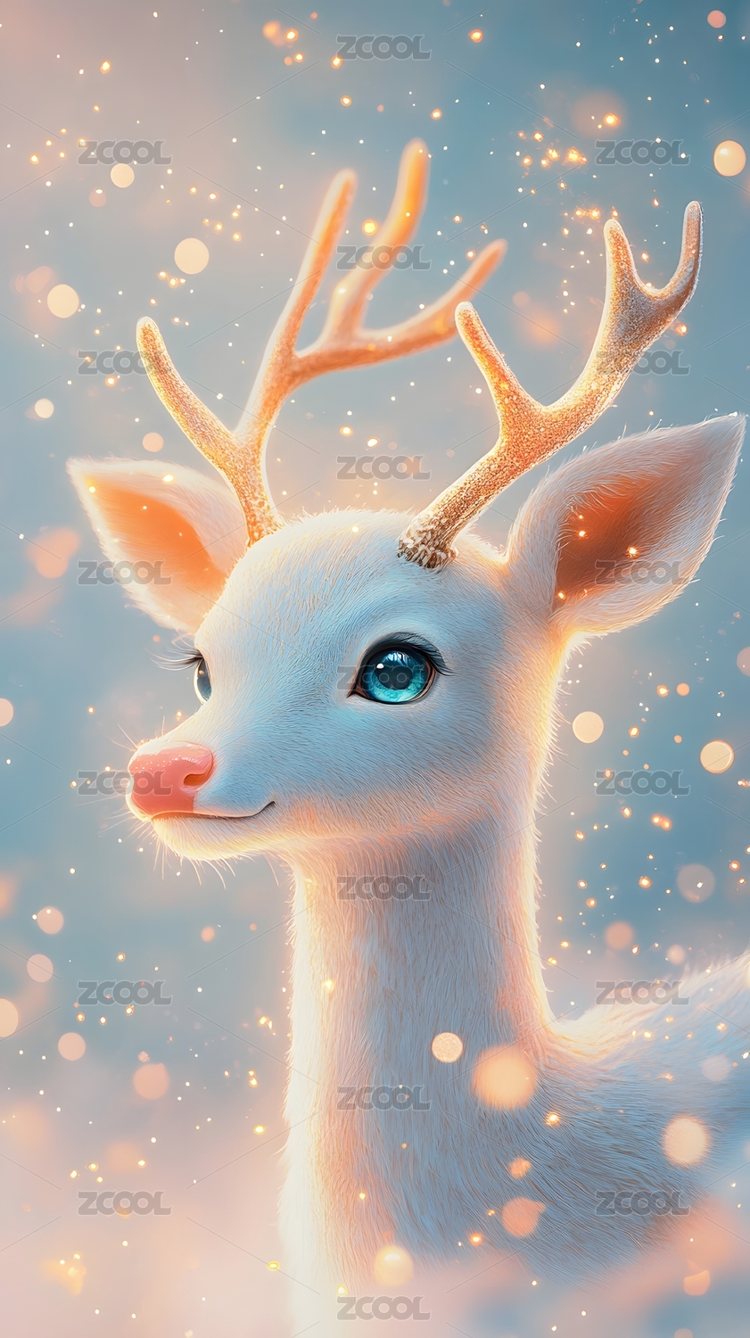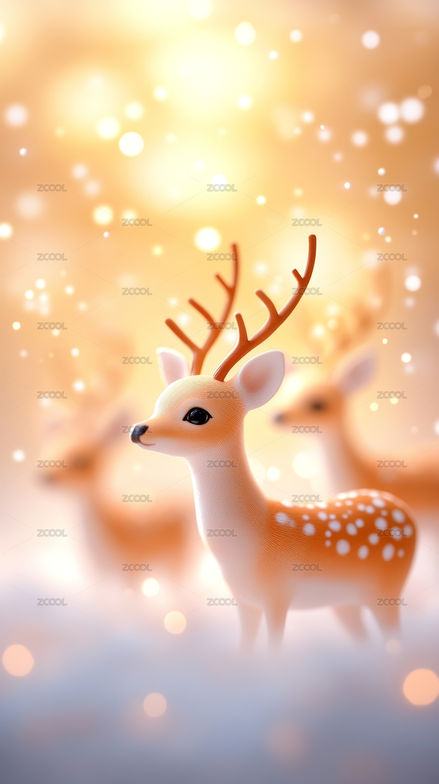 梅花鹿可爱唯美野生动物3D卡通插画壁纸