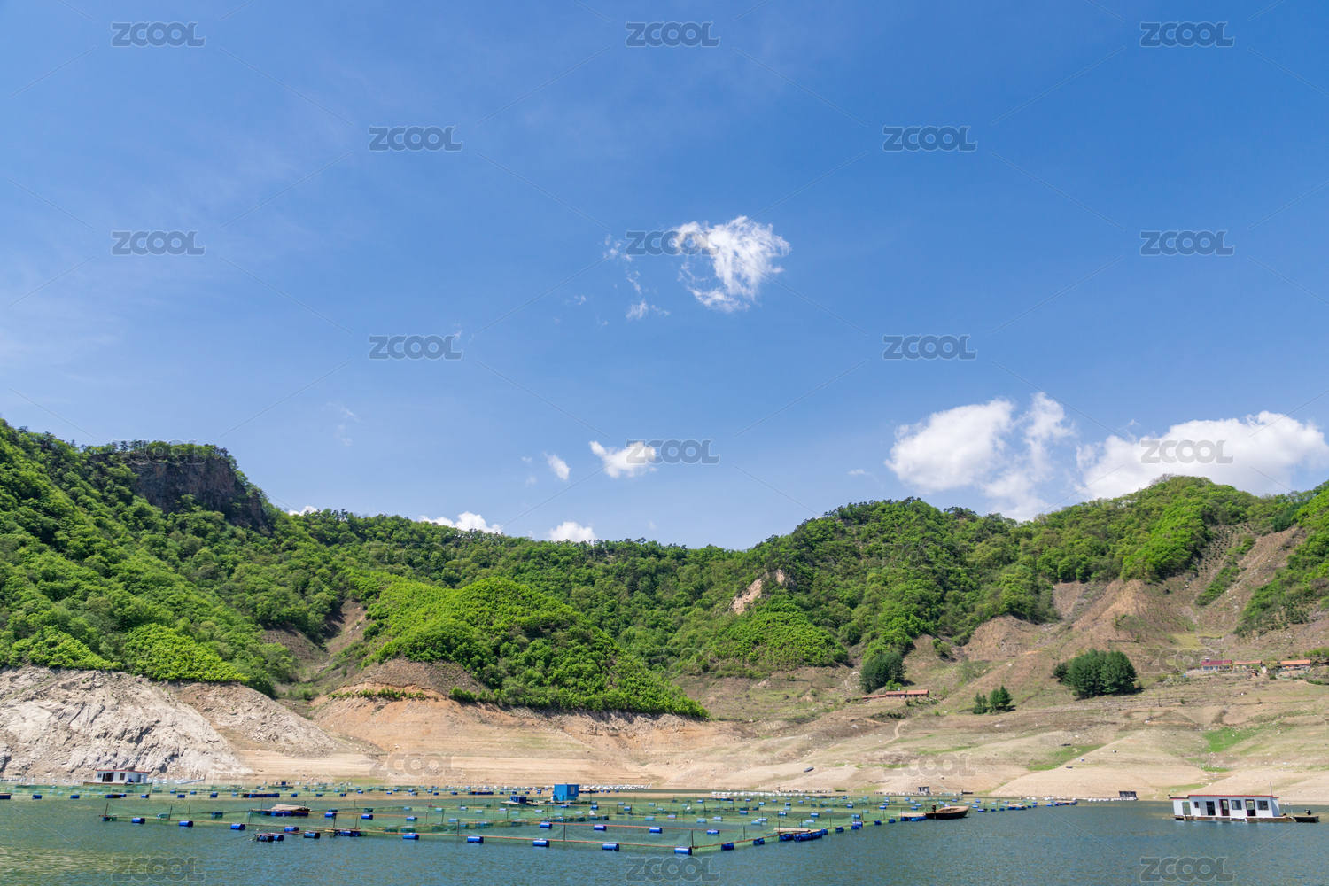 山坡,树林,天空,云,蓝天,湖泊,亚洲,中国,丹东,春季