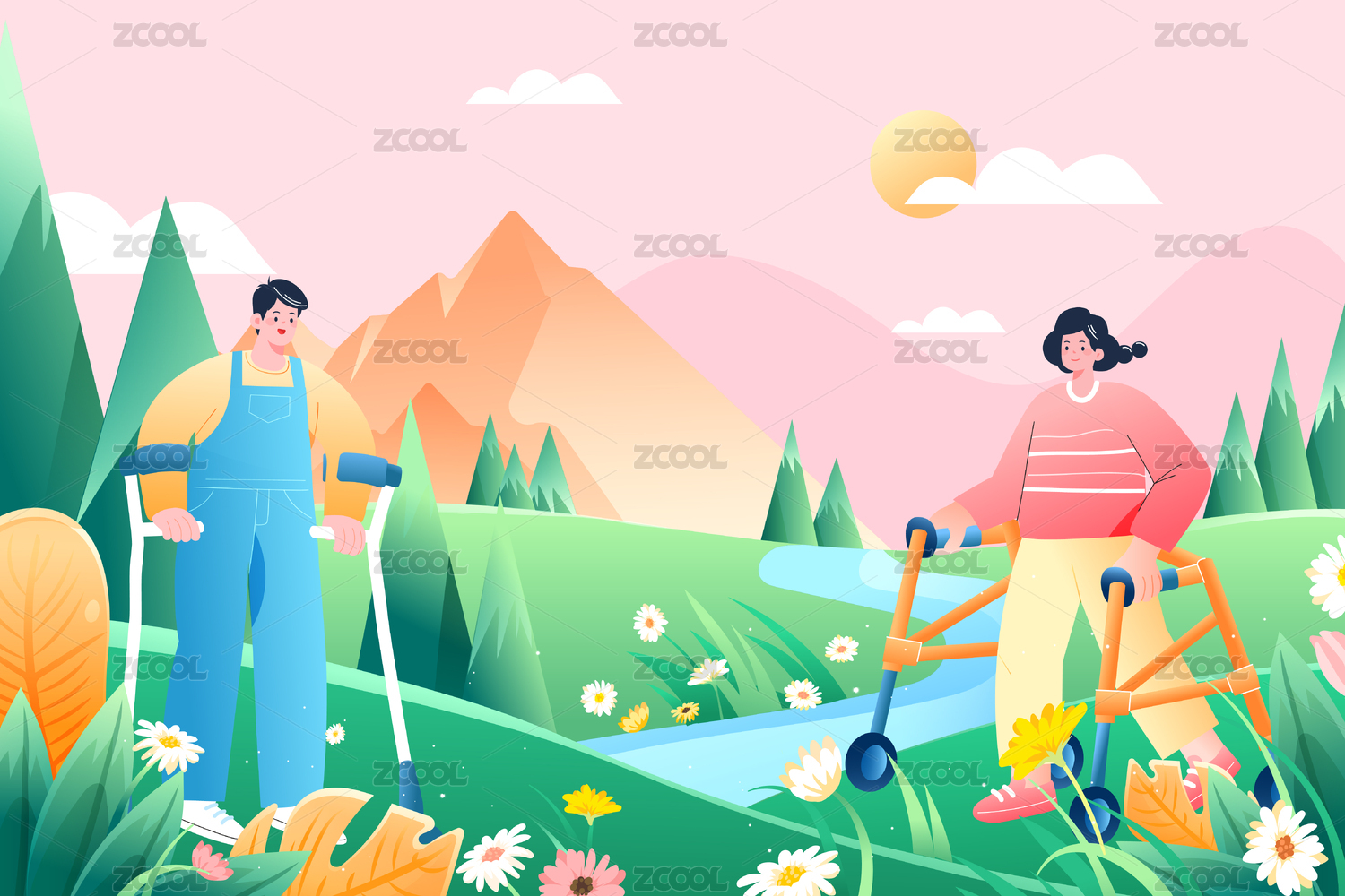 卡通春季春天立春节气节日户外郊游矢量渐变