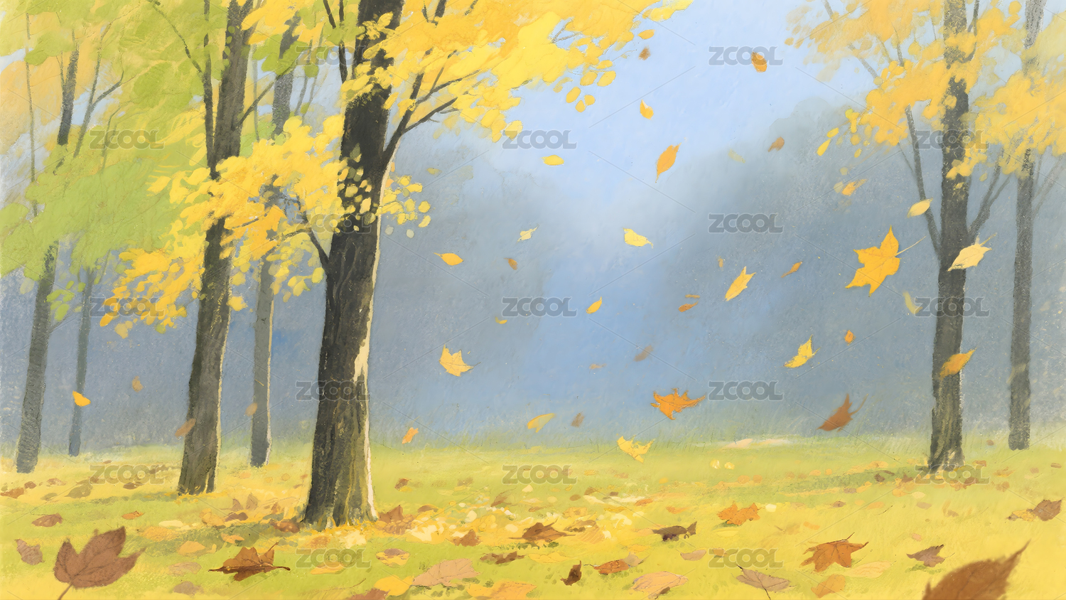 AIGC202402,秋天,风景,树木,落叶,意境,金黄