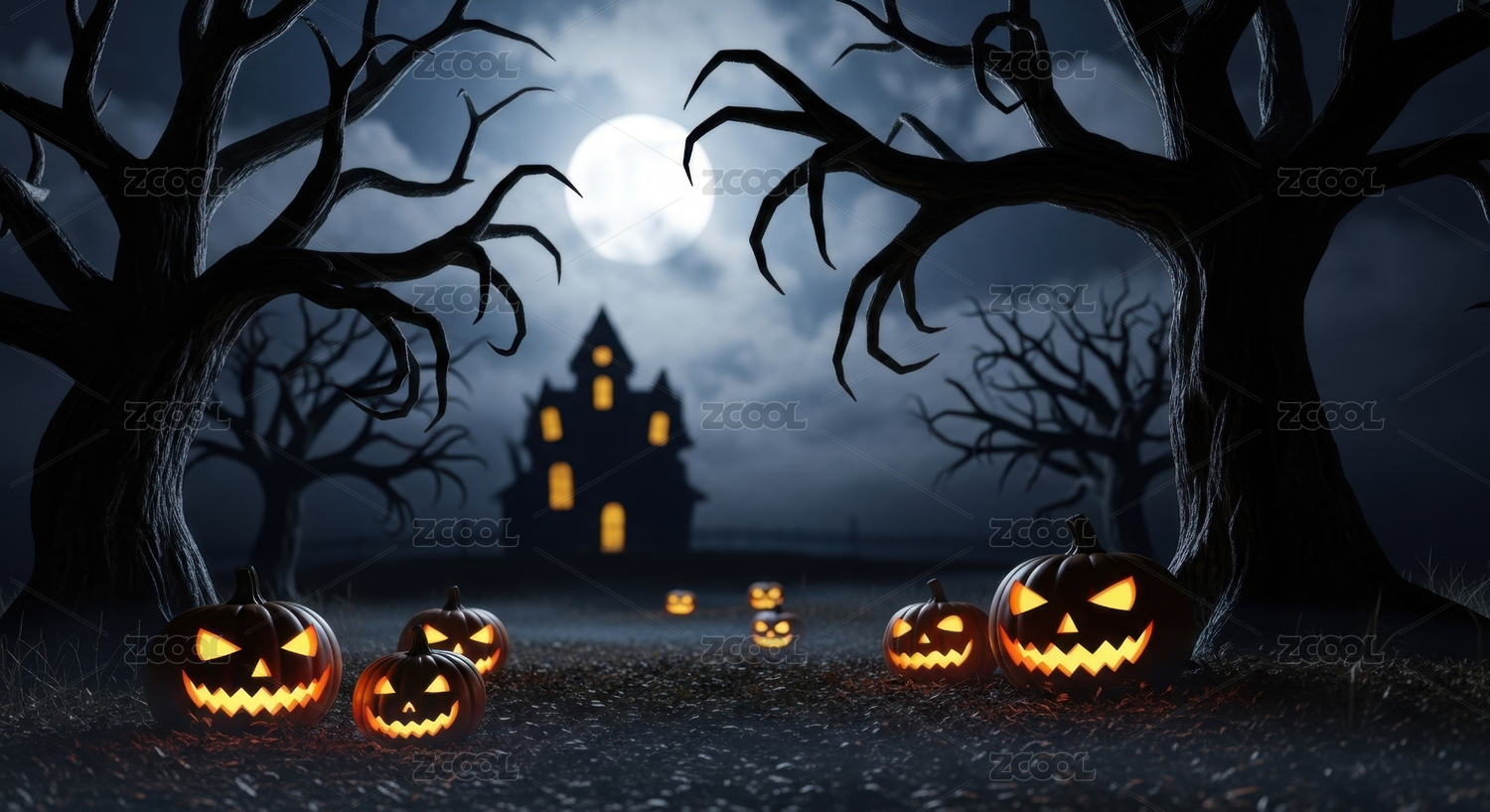 万圣节,鬼节,扫把,城堡,坟墓,墓地,蝙蝠,蜘蛛,黑夜,鬼怪