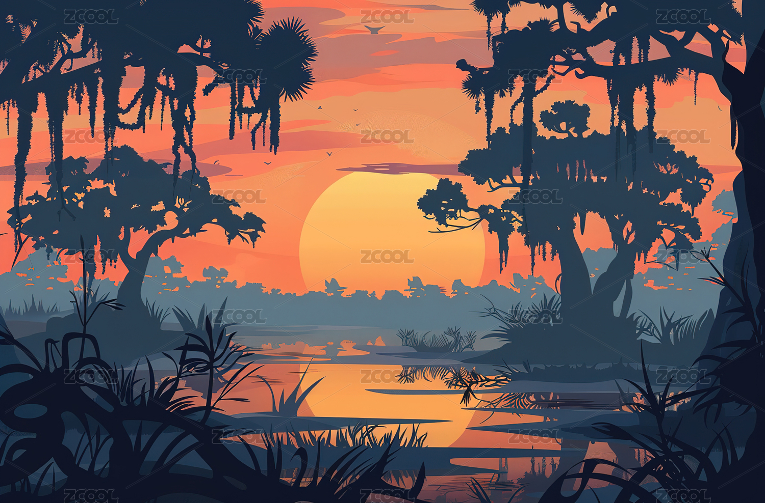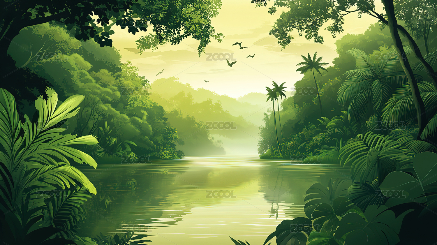 热带雨林日出插画