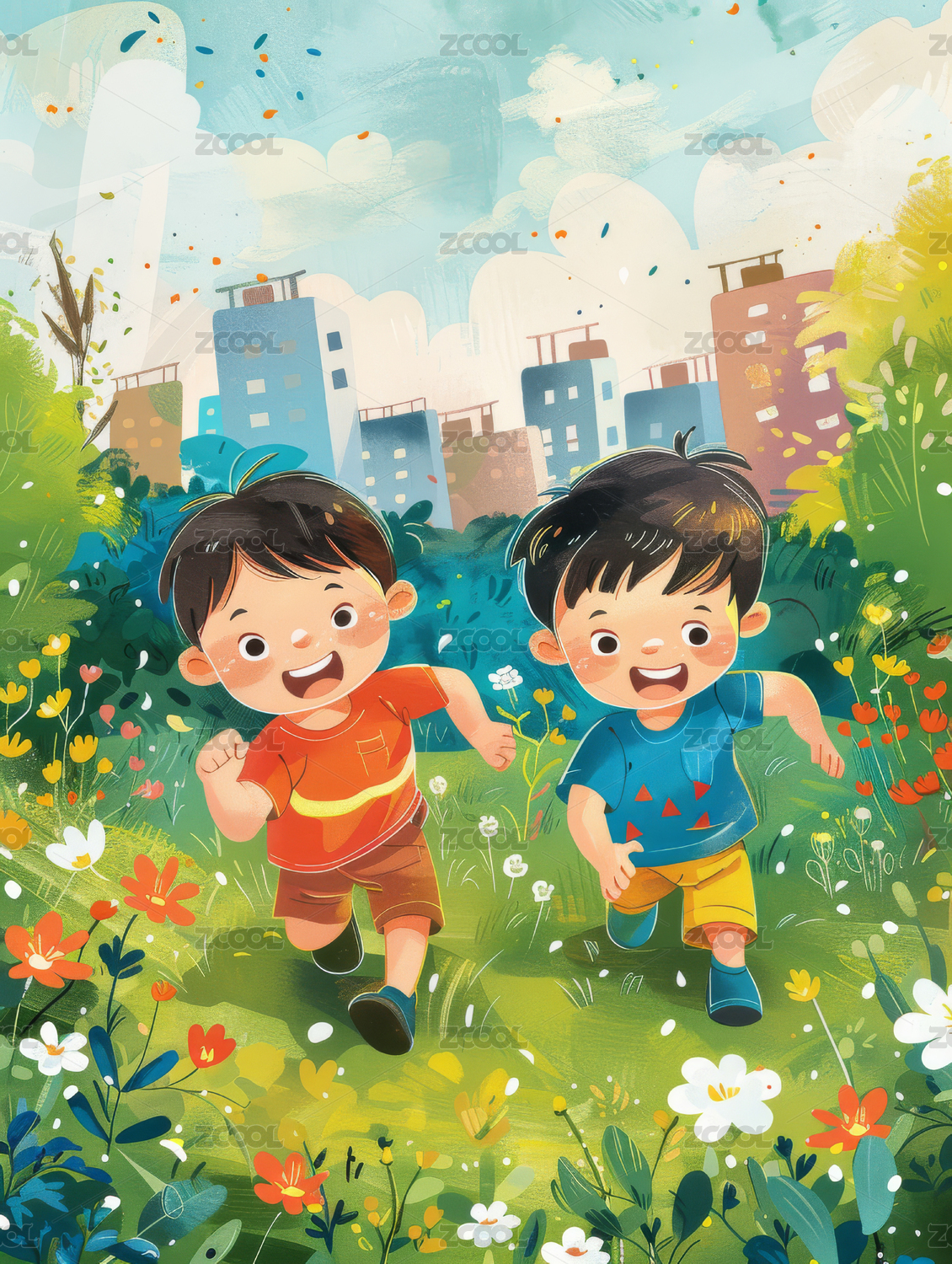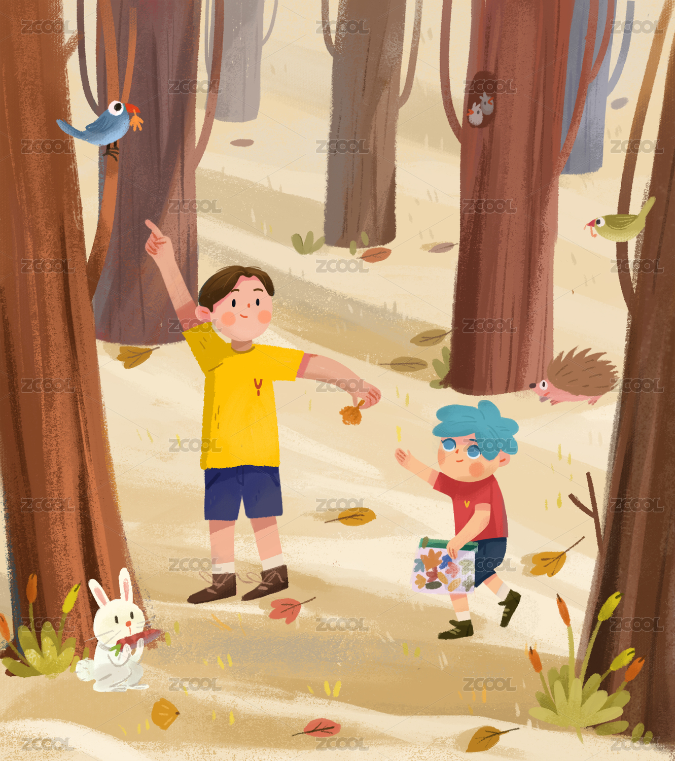 秋天秋游立秋秋分户外活动运动卡通漫画插画