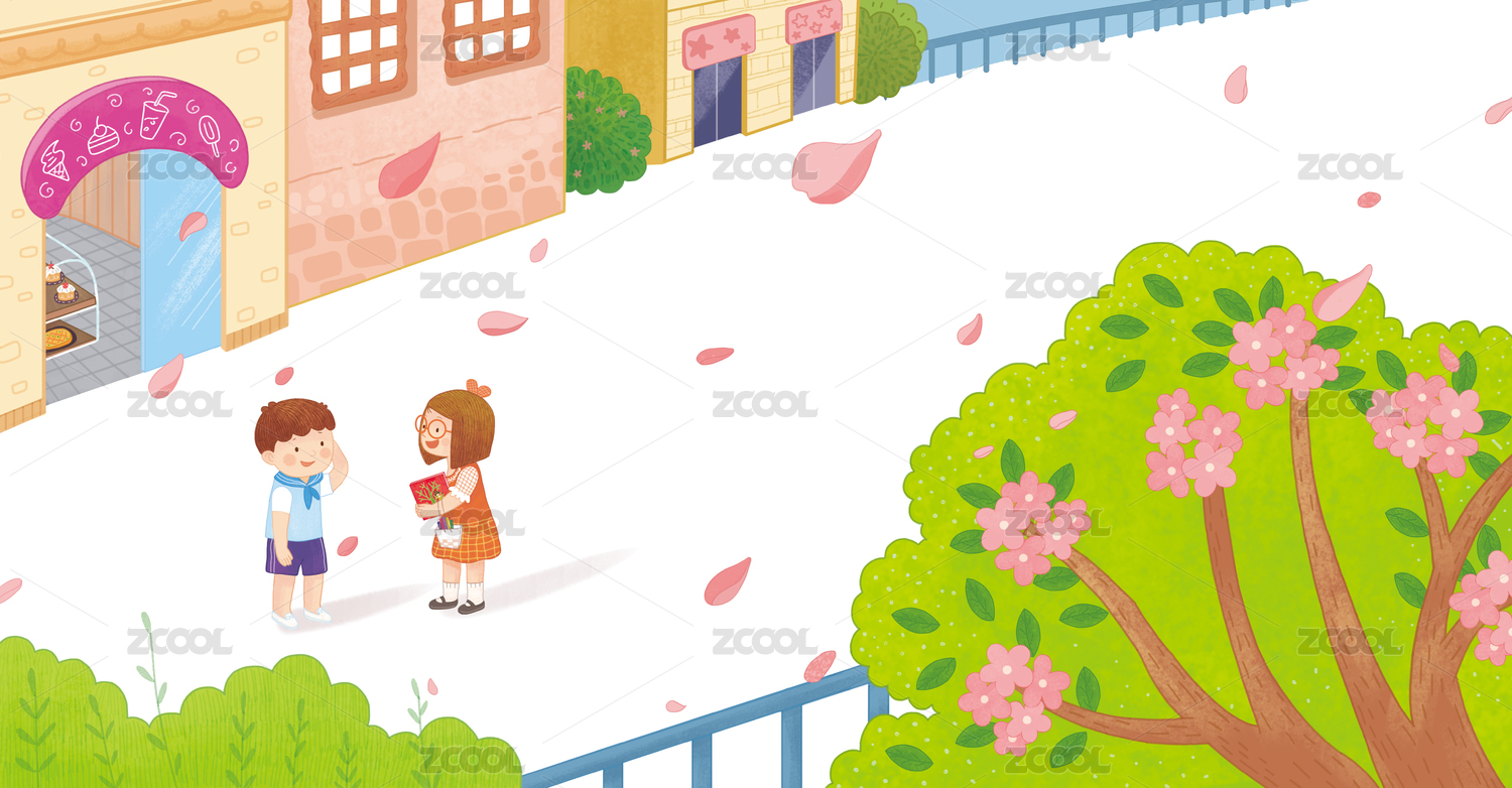 穿着蓝衣服的男孩向戴着眼镜的女孩道歉