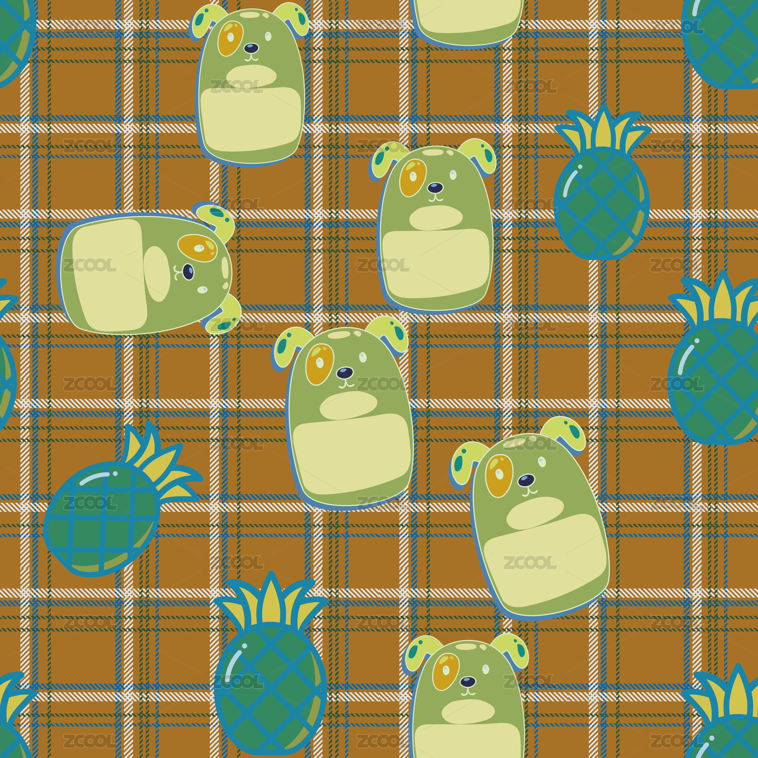儿童可爱卡通格纹小棕熊无缝矢量印刷背景
