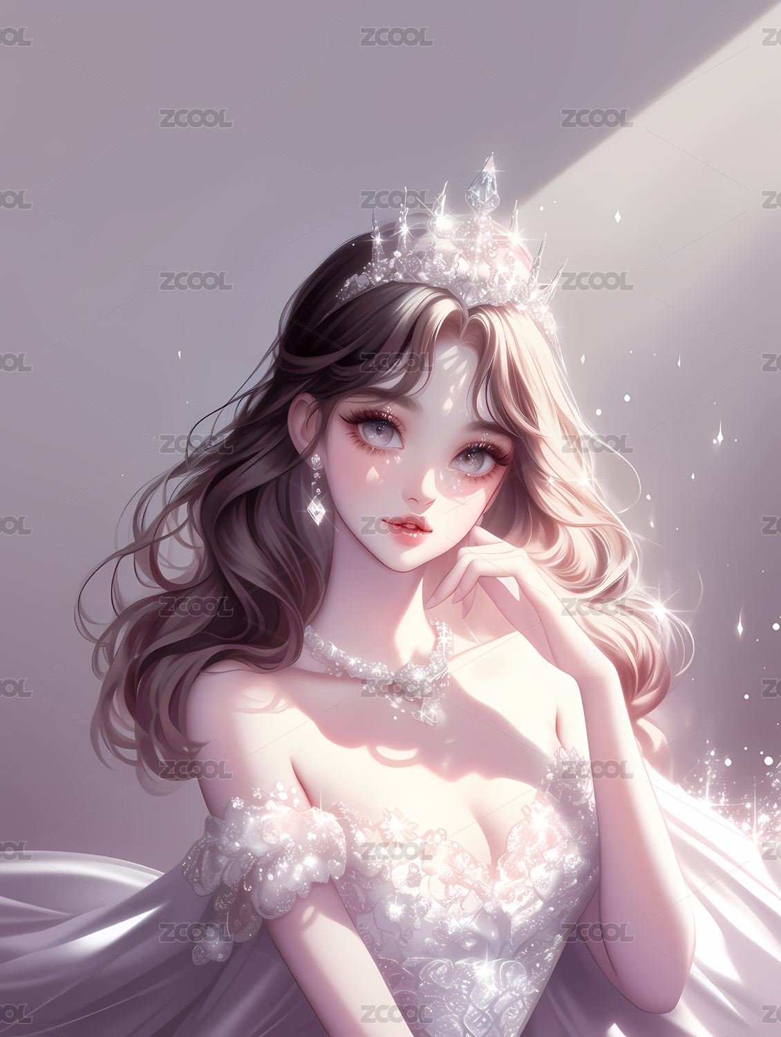 公主画像,玫瑰花环,金饰装点,古典优雅