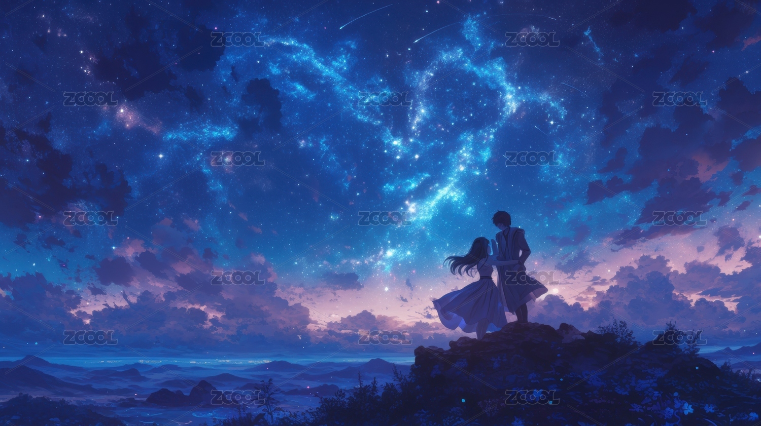 七夕情人节节日恋爱祝福浪漫唯美艺术插画