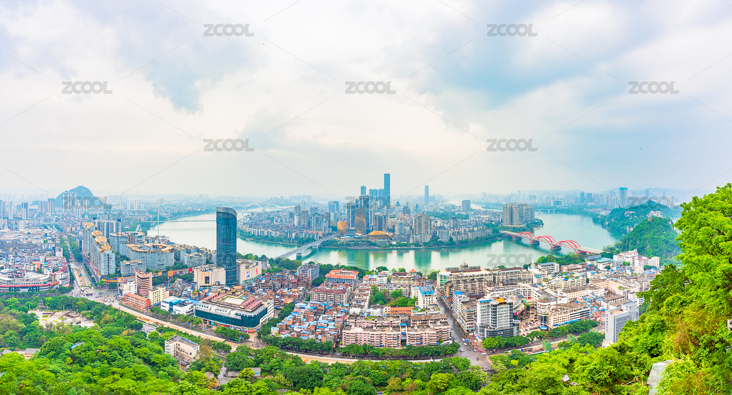 广西柳州市马鞍山傍晚时分的城市天际线风光