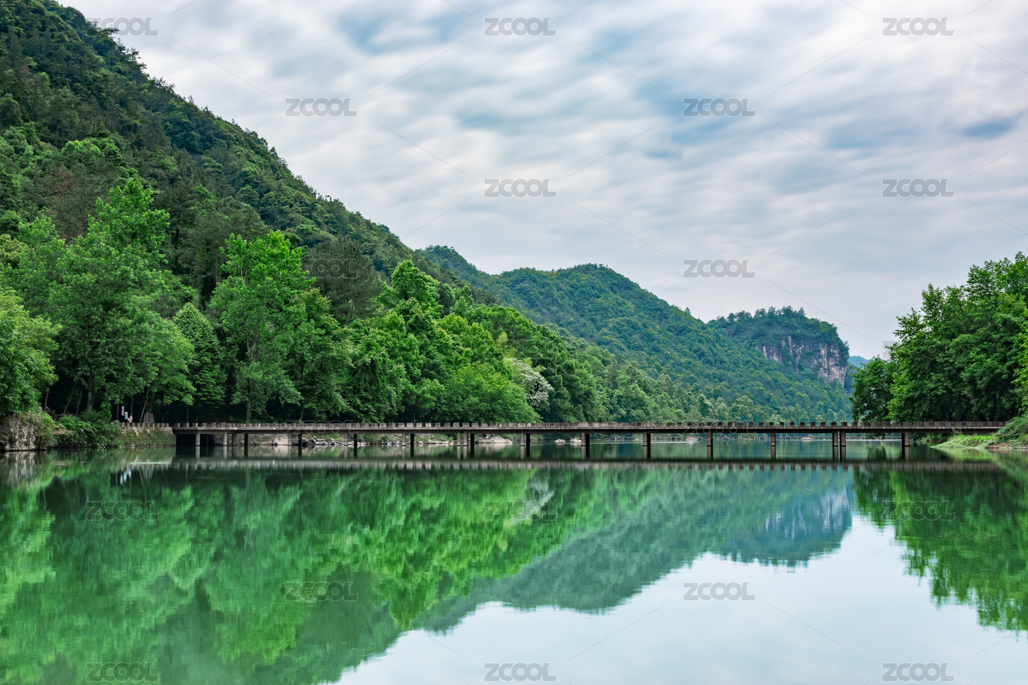 中国湖南省郴州市小东江风景区的桥梁和山川
