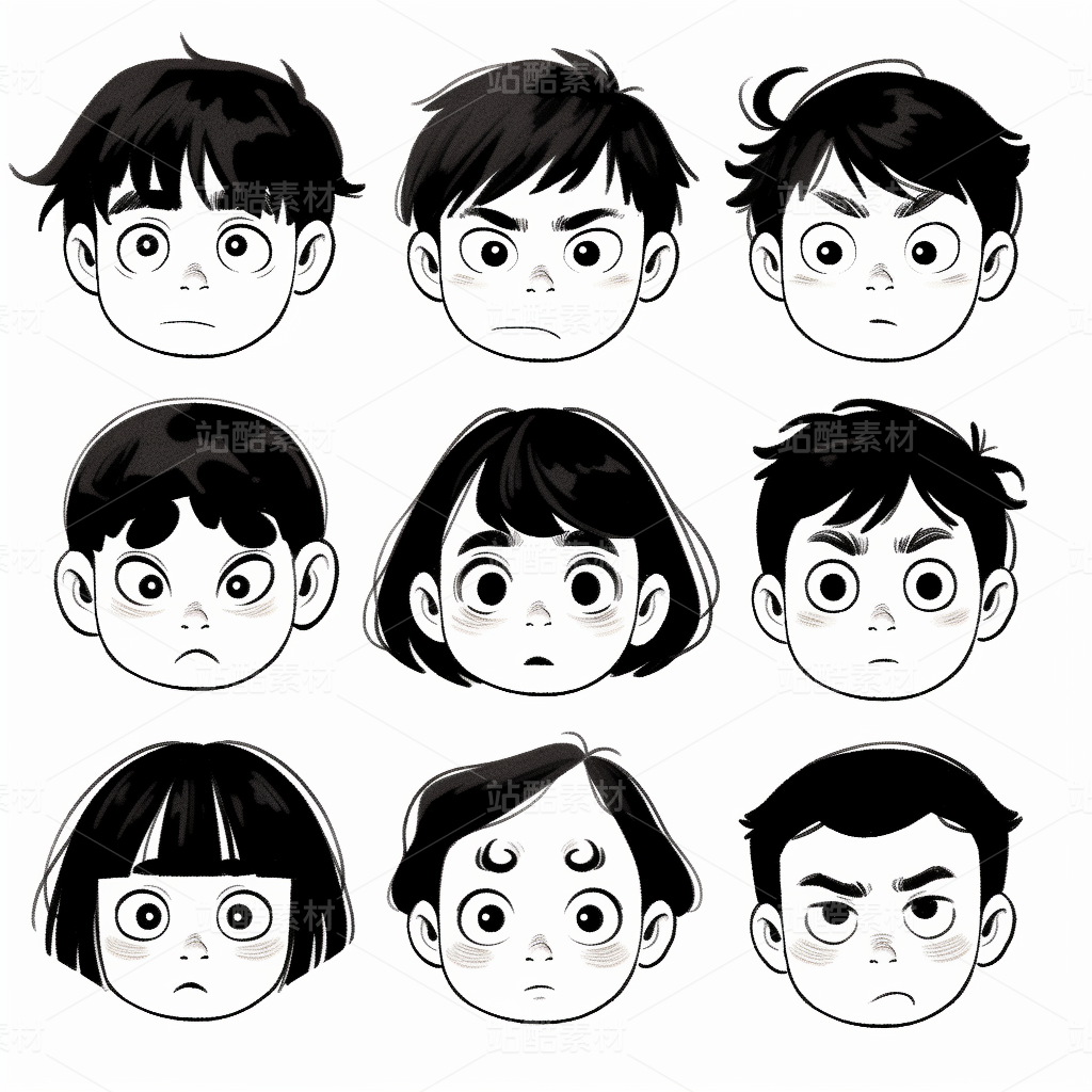 儿童,小孩,头像,表情包,表情,情绪,开心,调皮,惊讶,发呆