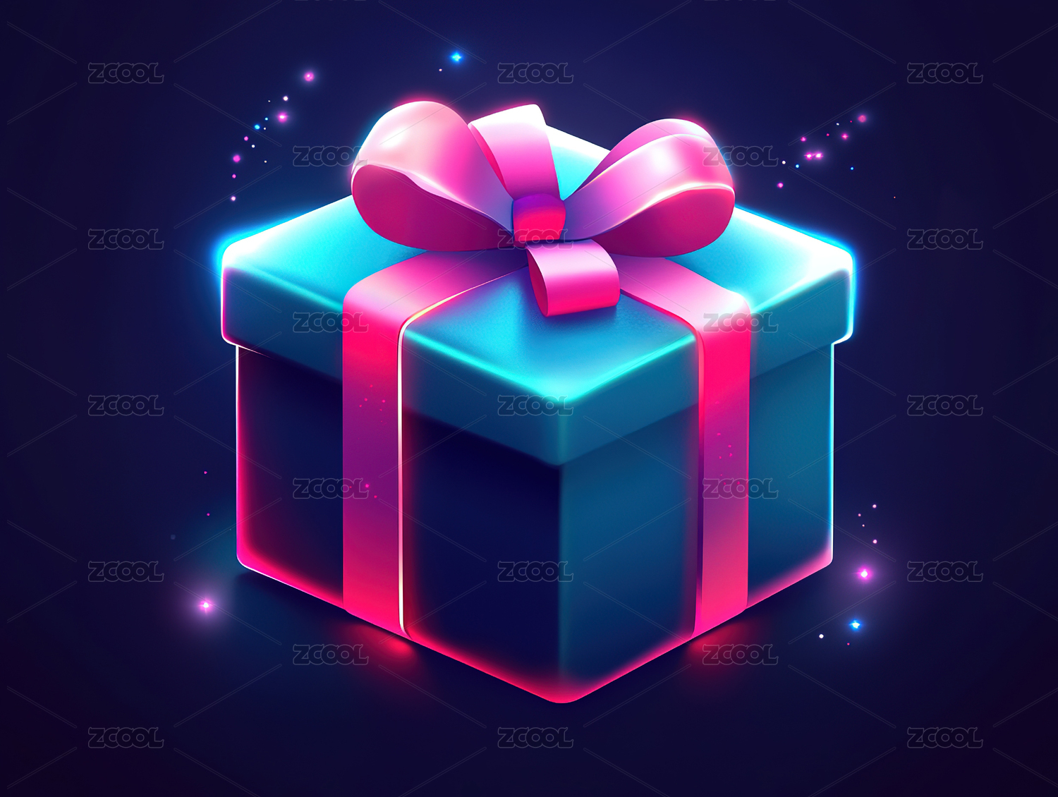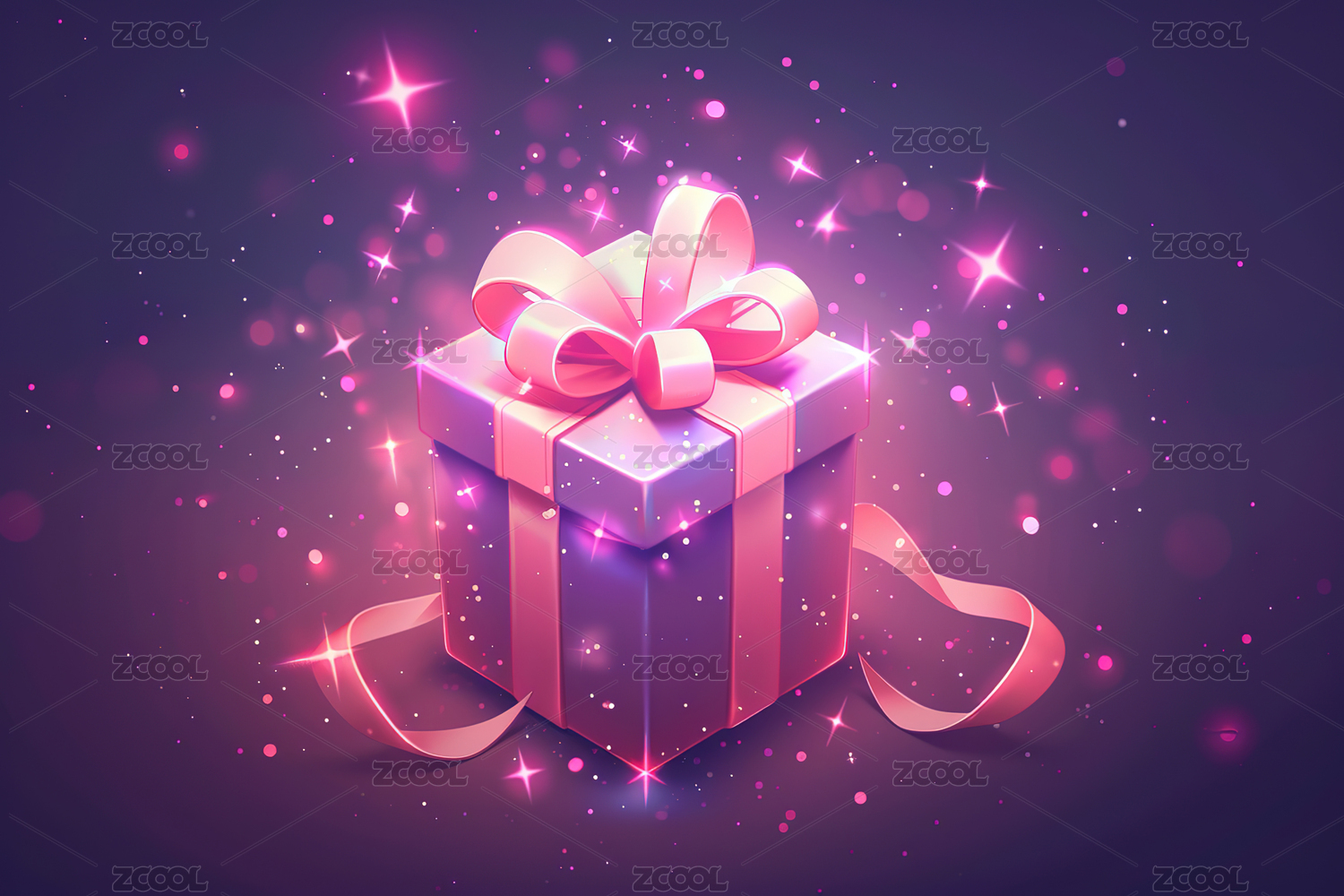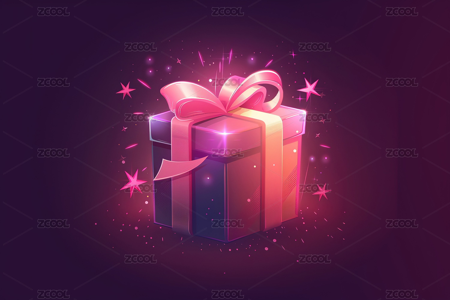粉色发光礼物盒子插画元素