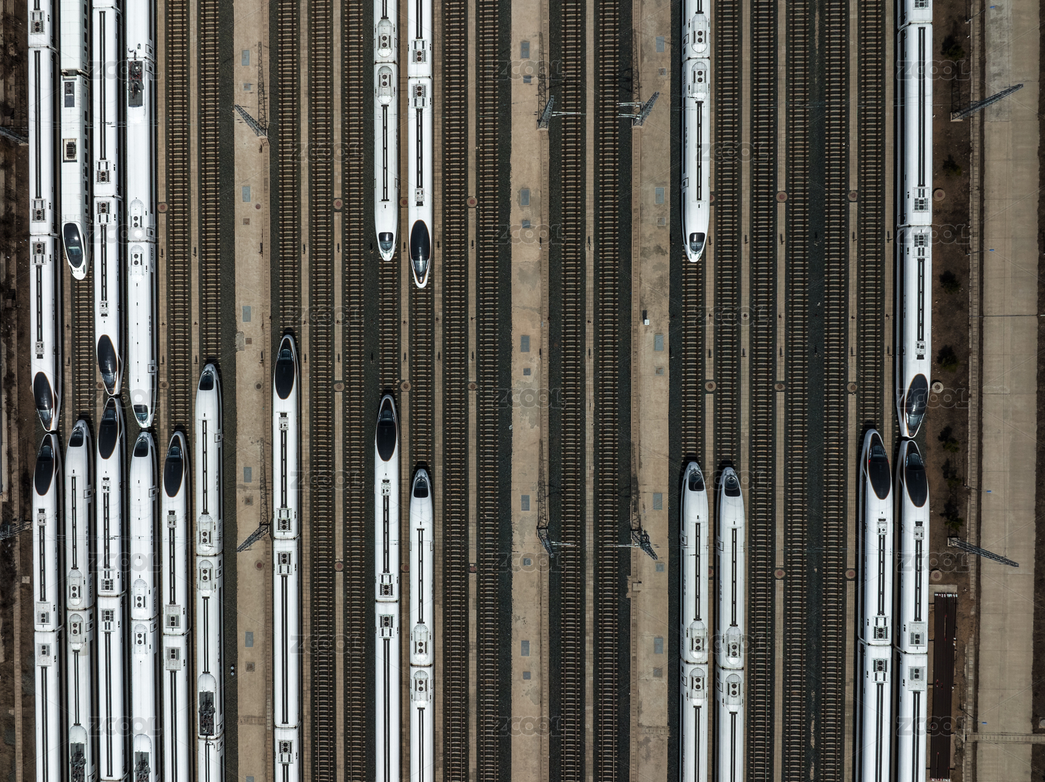 航拍蓄势待发的高铁动车所