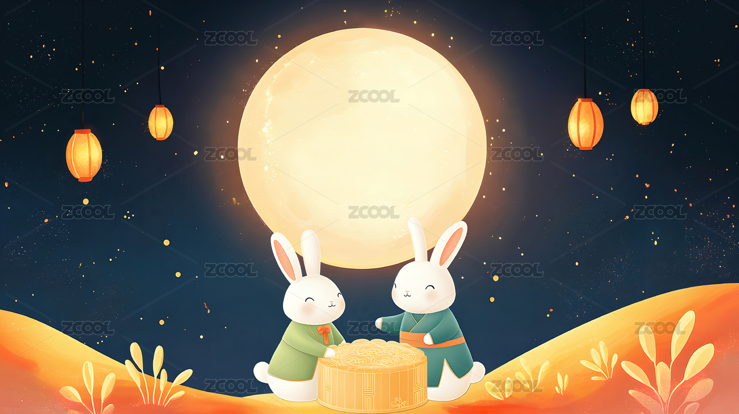 中秋节玉兔主题插画