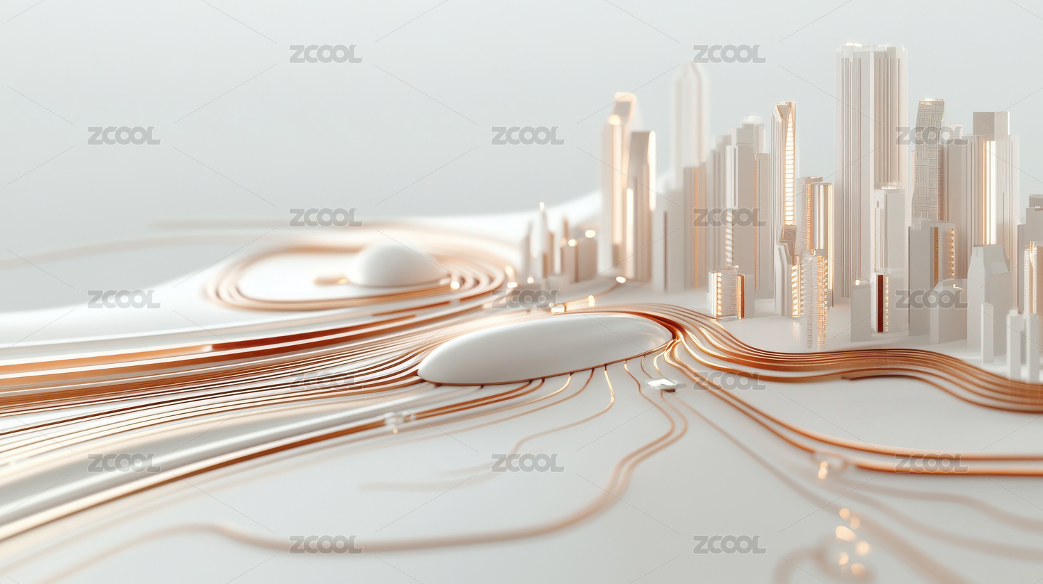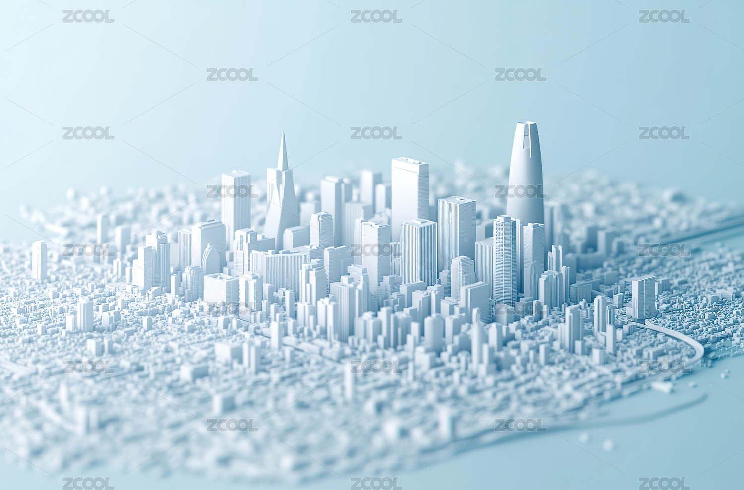 数码科技蓝白色智慧城市智能建筑插画海报背