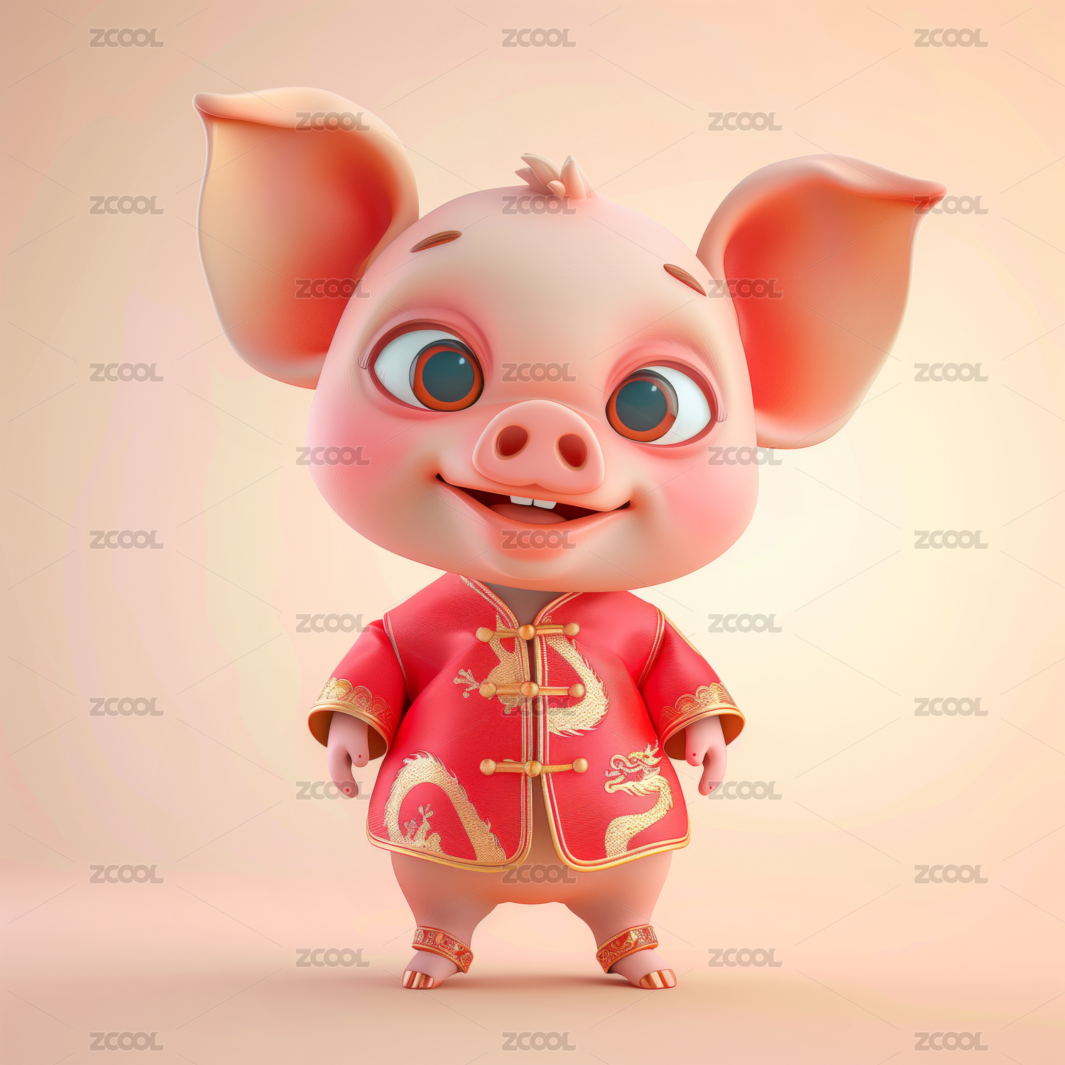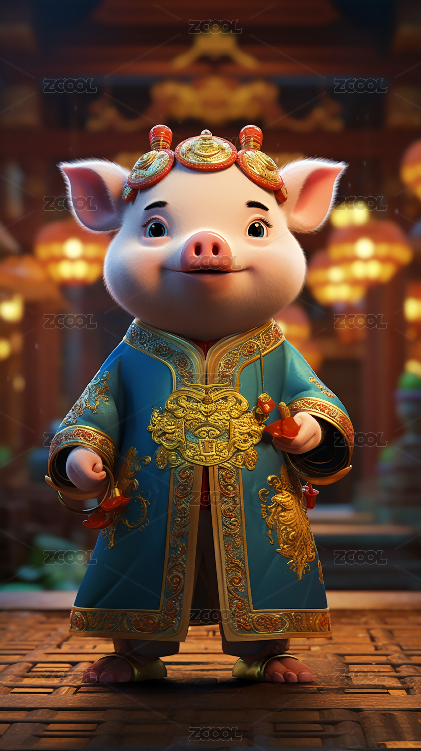 3D卡通中式传统猪插画