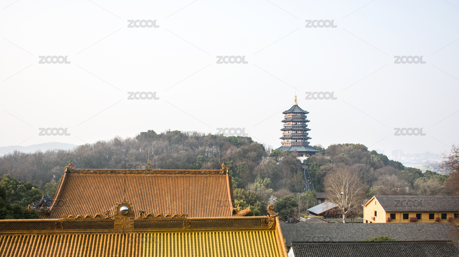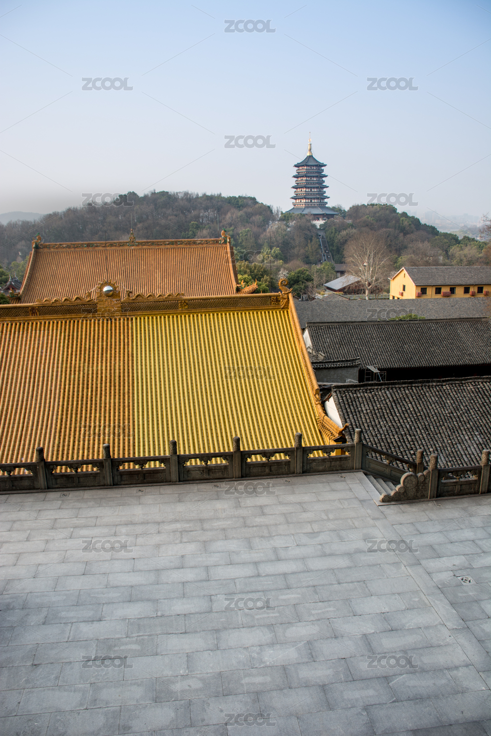 浙江省杭州市净慈寺的屋顶与雷峰塔