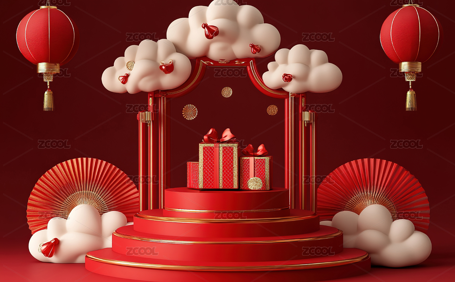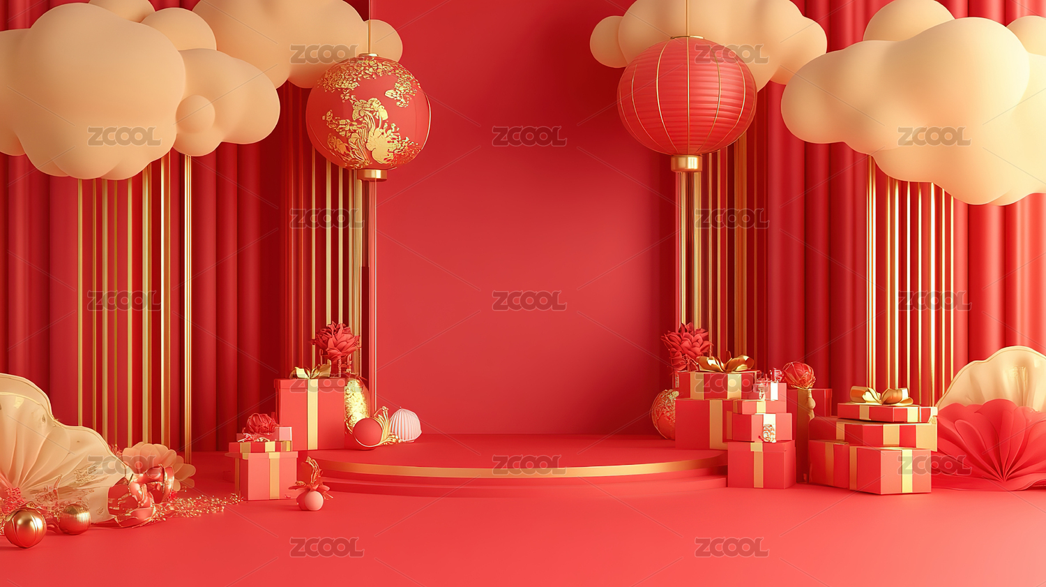 无人,中国文化,传统,插画,红色,节日,春节,三维图形,设计,舞台