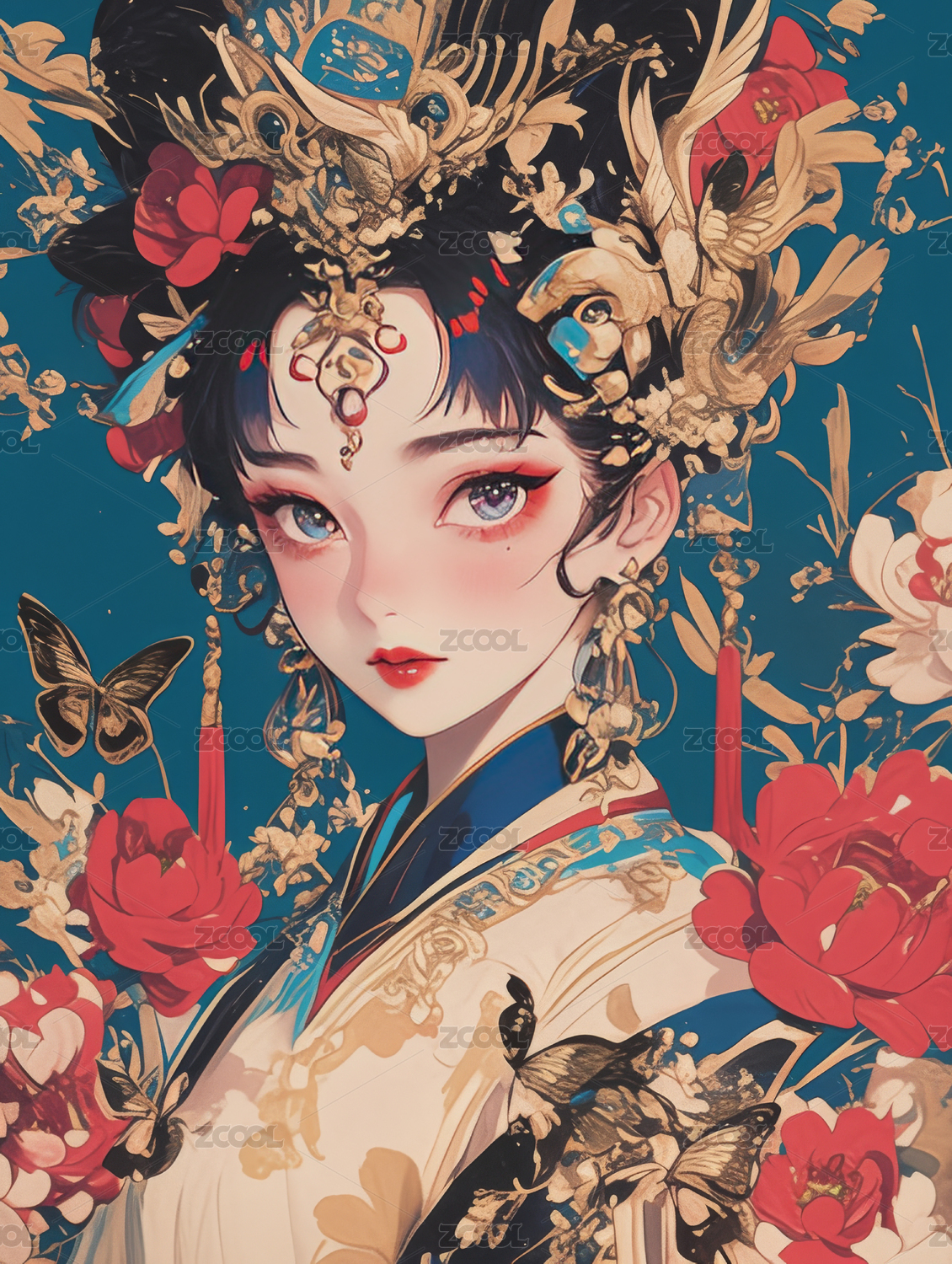 华丽服饰的古典美人